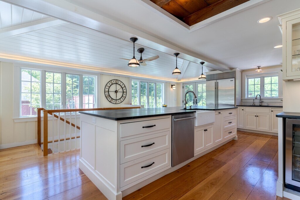 This completely renovated Colonial Farmhouse was recently appointed with all new bathooms. The property is sunny and bright with wide pine floors throughout. The kitchen features ship lap detail molding, a built in eating area and an office area. High end appliancees include: induction Wolf Cook Top, a Wolf Steam Oven, a Wolf L-Series Oven, a Sub Zero Refrigerator, a Sub Zero Wine Refrigerator, Bosch Dishwasher. An open and spacious dining room and living room flow from the kitchen area. The family room features floor to ceiling windows and heated floors. You can access the second floor from either the curved front staircase or a back staircase. On the second floor you will find a large primary bedroom with a king bed and new en suite bath. Another bedroom on the second floor features a queen bed and new en suite bath. The third floor has two additional bedrooms: one with two built in twin beds and the other with a full bed. A new full bath completes this level.Downstairs the ground level mudroom has radiant heated floor and locker storage area. A nicely appointed laundry room with LG washer and dryer, storage area, utility sink and a built in drying rack. There is also a cottage on the property equiped with a full bath that is currently being utilized as a home gym. Enjoy all this and manicured grounds, a firepit, stone terrace, expansive deck with a built in Lynx grilling station. Close to the beach, shopping, and Abenaqui Golf Course. Available to rent Nov-May. MLS# 5051119