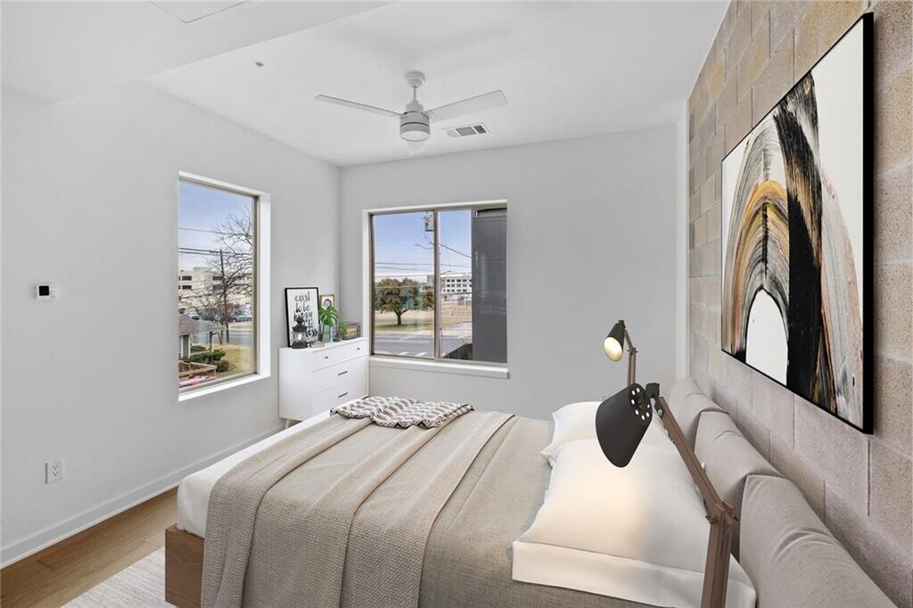 ** Now Offering TWO Weeks Free ** Incredibly luxurious new-construction home available for lease! This gorgeous 2-bedroom/2-bathroom condo provides amazing privacy, while also giving you enhanced functionality with a separate flex space, which can double as a home office/exercise room/game room, or as an additional bedroom. Beautiful quartz counters, stainless appliances (washer/dryer included), white oak engineering hardwood floors... this home is a must see! The spacious primary bedroom is fully equipped with attached en suite and a giant, floor to ceiling walk-in shower, while also including an incredible custom built in wardrobe - this property really stands out from the rest. Your private carport is EV ready and includes a 220V outlet. Each unit is divided with thick, CMU concrete walls, giving these condos a truly unique and private feel. You'll enjoy being close to local restaurants and shopping and enjoy the ease of access to major roadways, downtown, UT, etc..