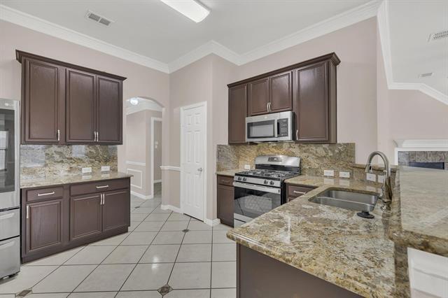 Welcome home to this beautiful, well-maintained, move-in ready home on a corner lot featuring 4 bedrooms, 2 living areas, and 2 bathrooms in highly sought after Mansfield ISD! Ceramic tile and wood-like flooring throughout the home. Granite countertops in kitchen and bathrooms. Kitchen includes all stainless steel appliances and a sizable walk in pantry. 2-car garage includes built-in cabinets for additional storage space. Spacious backyard with an extended covered patio will be a great spot for relaxing and spending time with loved ones and friends! Schedule a showing today! All information in this listing deemed reliable but cannot be guaranteed. Information to be verified by tenant and tenant's agent.