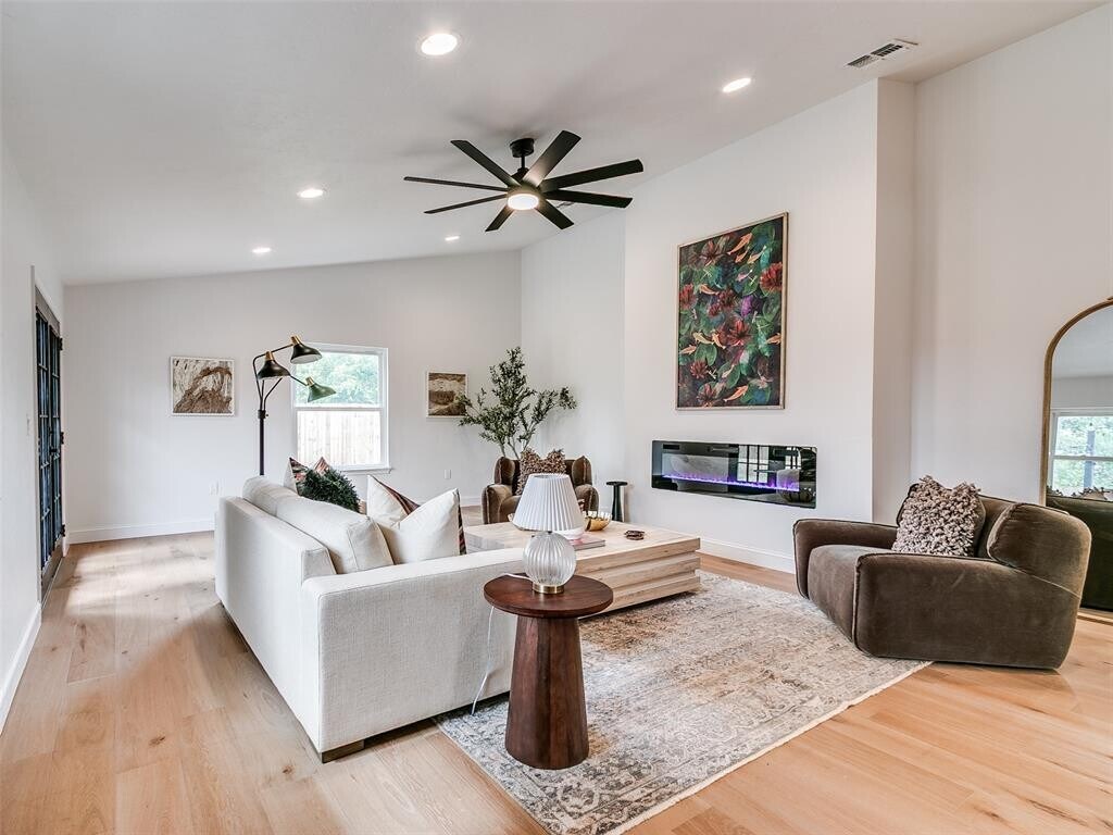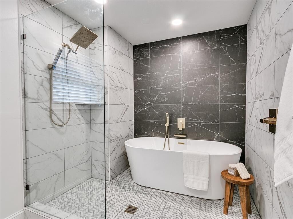 Step into this beautifully remodeled 4-bedroom,2-bathroom home that blends modern design with thoughtful functionality. Engineered wood floors and 5 1/4" baseboards flow throughout the home,adding warmth and sophistication. The oversized kitchen features custom cabinets to the ceiling,soft close drawers,3CM quartz countertops,stainless steel appliances,decorative tile backsplash,an oversized farmhouse sink set under a large picture window,textured pendant lighting over the island that includes a trash can pullout,and a coffee bar complete with a pot filler. The primary bedroom includes a walk-in closet outfitted with a custom organization system. The en-suite bathroom offers a spa-like experience with a double sink vanity and a stunning wet room that includes a standalone soaking tub and a walk-in shower. The backyard offers a large patio,a shed for your storage needs,and a brand new fence! Solar panels help reduce energy costs and improve efficiency! This home has been updated to a 200 amp breaker panel,a whole-house surge protector,and an emergency generator hookup. This home offers the perfect blend of style,comfort,and practicality. Close to Tinker AFB,shopping,downtown,I-35 and I-40!