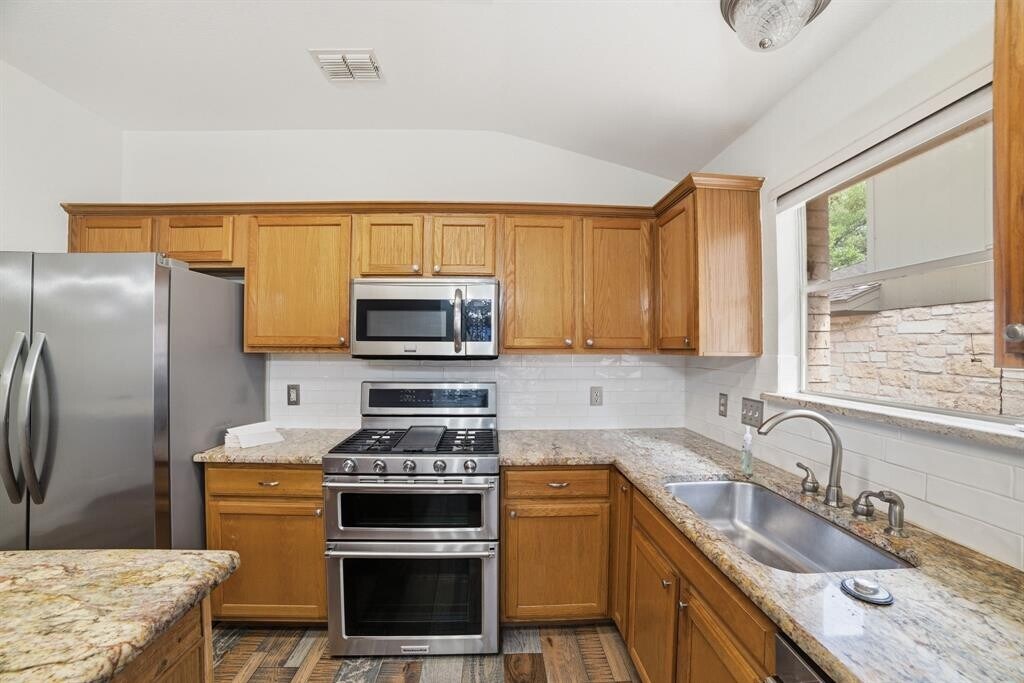 Fantastic rental in the heart of Cedar Park. 3 bedroom/2 bathroom with no carpet! All tile flooring. Large backyard covered patio with fireplace and fans. Back gate opens to walking area with no direct backyard neighbors. Granite countertops with stainless steel appliances. Fridge included with home.