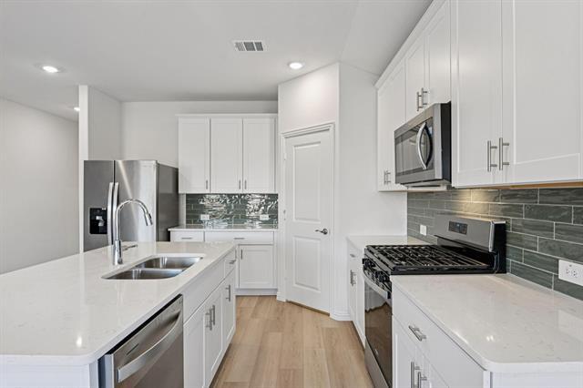 MOVE-IN READY NOW FOR LEASE —don’t miss this BRAND NEW, energy-efficient home! The bright, open living space with views connects seamlessly to a covered patio for easy indoor-outdoor living. Features include white cabinets, veined white quartz countertops, stainless steel appliances with gas cooktop and large island, light tan EVP flooring, and light taupe carpet for a warm, modern feel. This home has a oversized backyard with views of the green belt. Enjoy an active lifestyle in this resort-style community with a pool, basketball court, and playground. Convenient access to US 380 makes commuting to McKinney, Frisco, or Richardson a breeze. Designed with energy-saving features for better comfort, healthier living, and long-term savings.
