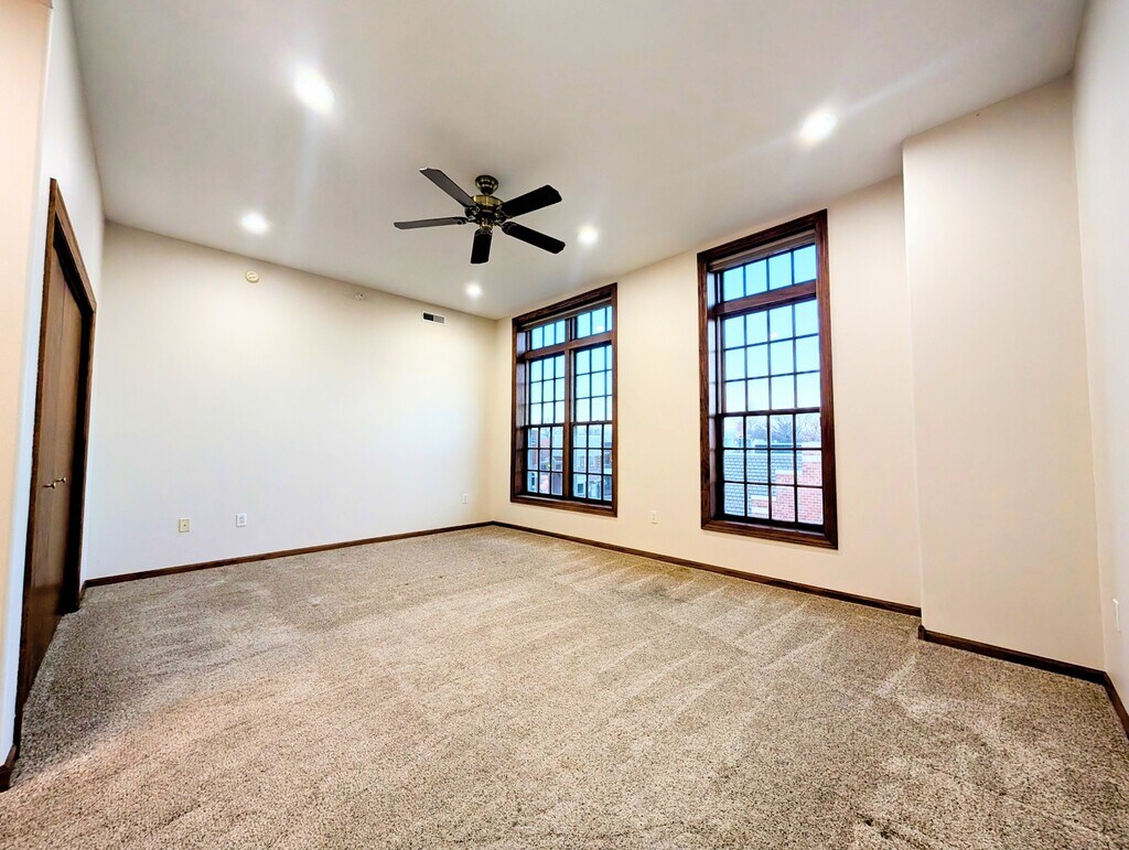 Corner third-floor condo located on the Molengracht in the heart of Pella, with views of both Main Street and the canal. This 2 bedroom, 2 bathroom unit offers elevator access and a well-designed layout with en-suite bathrooms for both bedrooms, providing privacy and flexibility. The open living area features large windows for natural light, a gas fireplace, and direct access to two private balconies; one overlooking Main Street and another facing the Molengracht canal. The kitchen includes granite countertops, solid wood cabinetry, stainless steel appliances, and hardwood floors, opening seamlessly to the living and dining space. Additional features include in-unit laundry, recessed lighting, secure building access, and an underground parking garage. A garage space is available to rent from the City of Pella for $70 per month. This location places you steps from downtown shops, dining, and community events. Ideal for tenants looking for low-maintenance living in a walkable, central setting! Possible storage unit available in garage as well from City of Pella, based on availability! Rate is for 12 month lease, shorter leases are available with rent going up certain percentages higher than base rent: 9 month: 10% higher than base rent, 6 month: 20% higher than base, 3 month: 35% higher than base. Rent payments to be made by Direct Deposit Only. Rental applications are required for each resident 18 and older, application fee due upon submission. All applicants are required to fill out a PetScreening profile, regardless of whether you have a pet or service animal at this time or not. If you do not have a pet at this time, or only have a service animal, you are not charged any fee for your PetScreening account. Monthly pet fees and pet deposits will vary based on pet size, breed, and number of pets. Three pets per unit max. Please see our full pet policies for pricing ranges and examples on our website rental information and FAQs page: Qualifications: No evictions within the past 10 years, no felonies/violent or drug-related convictions within the past 10 years or certain other criminal records. No Felons or sex offenders, or certain other convictions. Must be able to display a monthly income of 3x rent, credit score of 600+. We will review applications with credit scores above 550, income of 2.5 times the monthly rent, but applicants with any one of these criteria may be asked to pay an additional security deposit. For consideration, please note that all applicants 18 and over will be subject to a credit, criminal, and eviction background check.