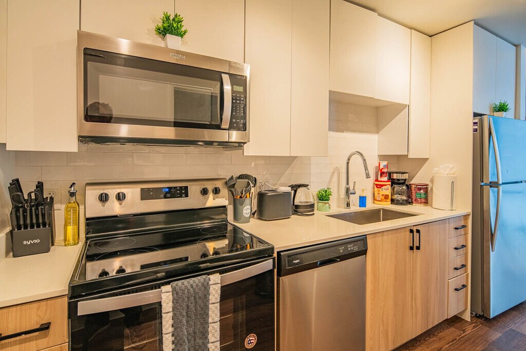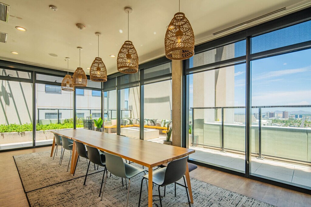 Unwind in style in the heart of Phoenix with this modern, stylish studio apartment. Nestled amidst award-winning restaurants, unique shops, historic landmarks, and top attractions, this apartment offers the perfect base to explore everything the city has to offer. Whether you're here for business or pleasure, this prime location ensures easy and convenient access to all your destinations. Welcome to your home-away-from-home! This studio apartment is thoughtfully designed to offer a socially and environmentally conscious living experience, paired with exceptional customer service and unmatched amenities. Enjoy a sleek, open-concept layout that seamlessly connects the kitchen, dining, and living areas, creating a bright, modern space that’s both functional and stylish. The fully equipped kitchen includes a microwave, stove and oven, refrigerator/freezer, dishwasher, toaster, electric kettle, coffee maker with coffee essentials, and all necessary glassware, silverware, pots, and pans. Relax in the living area with a 55" 4K HDR Smart TV and a coffee table. The apartment also features a dining table with chairs, a queen bed with premium linens, an office desk and chair, and reading lamps. Enjoy your own clean and private bathroom, fully stocked with essentials so you can pack light and relax more. One nearby garage parking spot is included, with details shared in your check-in instructions. Additional street or nearby parking may be available. Pets are allowed depending on size or if they are service animals, with an additional cleaning fee of $20 per night. There is a 2 pet maximum and only cats and dogs are allowed. If pets are brought without prior notification, a $500 fee will apply. Located in the vibrant heart of Phoenix, this apartment is surrounded by award-winning restaurants, unique shops, historic landmarks, and top attractions. The prime location makes getting around easy and convenient, whether you're here for business or pleasure. Your health and safety are our top priority, with a thorough, professional cleaning process after each check-out to ensure a spotless and worry-free stay. Noise monitors are installed in the unit to measure noise levels in decibels, and tampering with them will incur a fee. Security cameras are located in the hallways for security purposes. Pets are allowed with restrictions on certain breeds and a maximum of two pets. If pets are brought without prior notification, a $500 fee will apply. Includes an office desk and chair, high-speed Wi-Fi, and reading lamps. A laptop computer is not included. [SI]