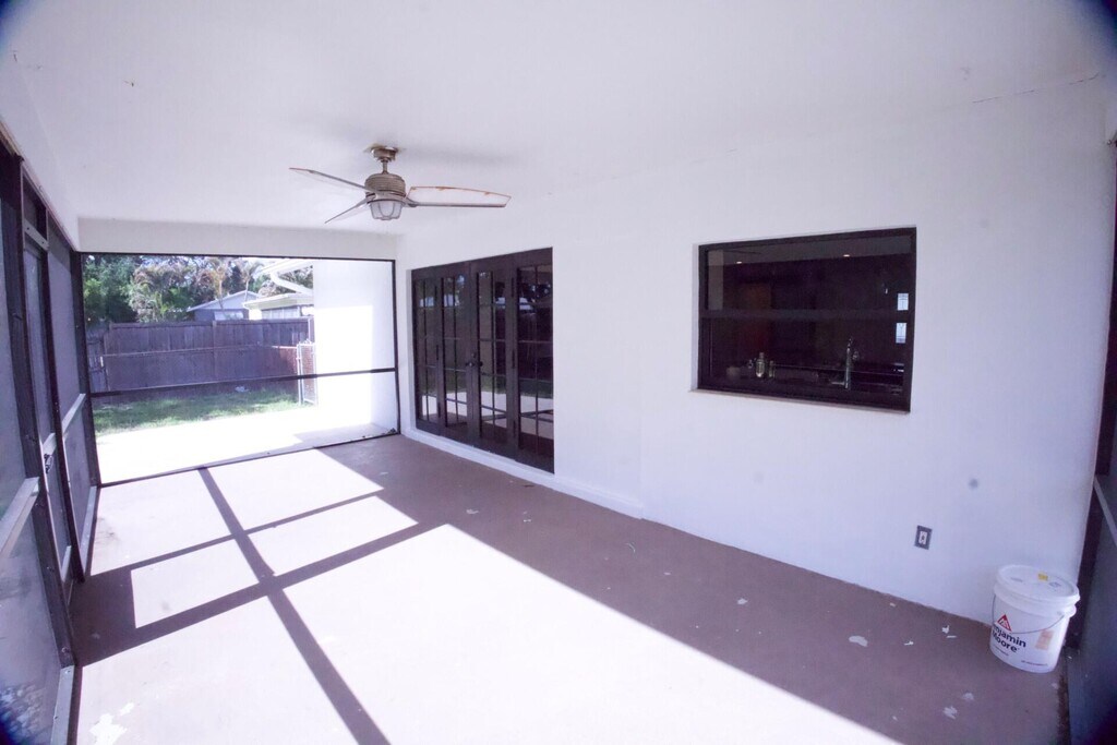 Welcome Home! This beautiful single-family home is newly remodeled w/Newer Metal Roof,Impact Windows & Doors. Large Great Room w/Newer Kitchen w/White Shaker Cabinets,Quartz Countertops,w/huge 8ft Kitchen Island. Newer Stainless Appliances. Freshly Painted inside & out. Interior Laundry Room w/ full size Washer & Dryer! Split Floorplan ~ Main Bedroom has large Walk-in Closet,Shiplap walls in Bathroom w/Glass Enclosed Shower. 2 additional nice size Bedrooms & Bathroom. Luxury Vinyl Wood Looking Floring Throughout. French Doors leading to Back Covered & Screened-In Patio. Tons of Room for entertaining out back & room alongside of the home to park your Boat,RV or Trailer. Circular Driveway provides plenty of parking! Fenced in New White Privacy Fence Coming Soon! NO HOA!!! 1st,Last,Security Deposit,Pets Welcome with Non-Refundable Pet Deposit,Exit Cleaning Fee MLS ID B26020197