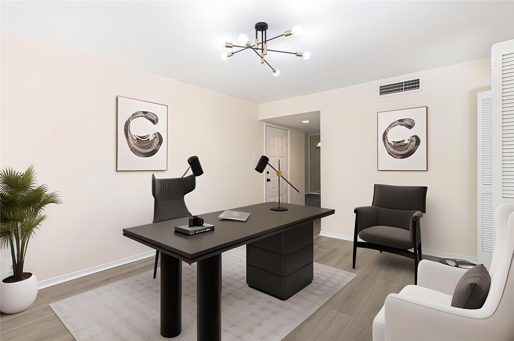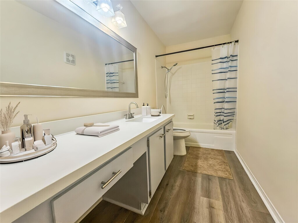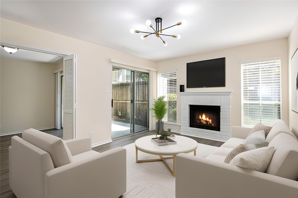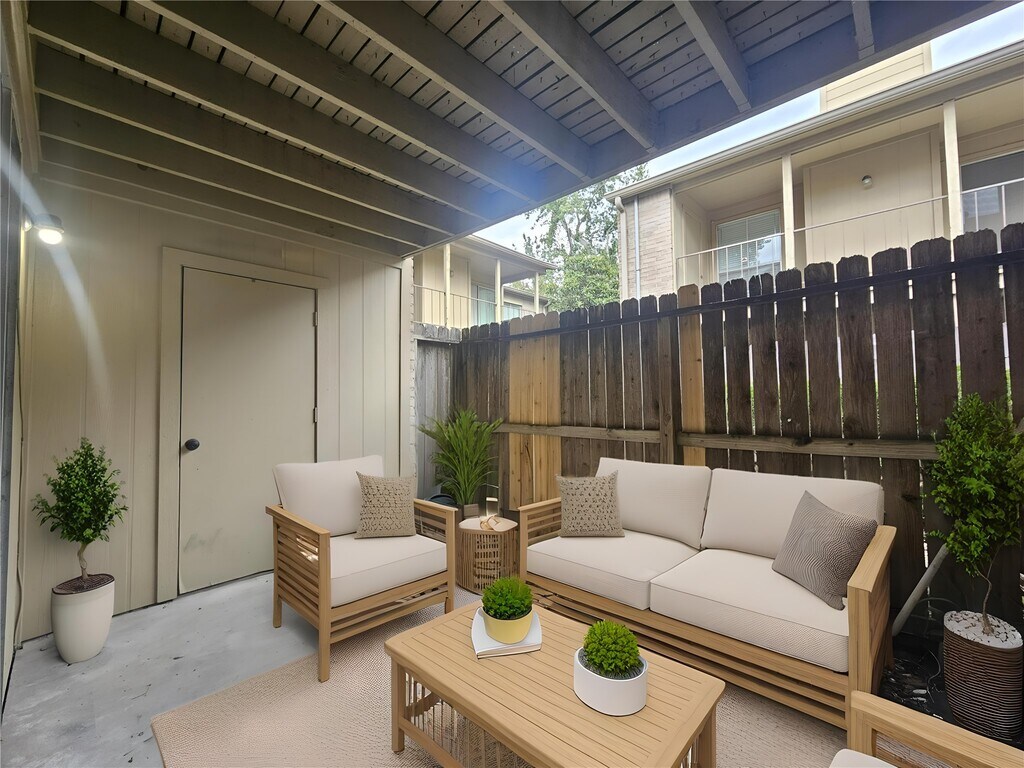 Beautifully updated 1st-floor 1BR condo with den in Memorial West/Energy Corridor,close to shopping,dining,and major employers. Luxury vinyl plank flooring throughout,no carpet. Updated kitchen with quartz countertops,stainless steel sink,modern faucet,cabinet hardware,electric range,refrigerator,and dishwasher — all appliances included. Bathroom upgrades include quartz vanity,new faucet,light fixture,refinished tub,and updated hardware. Flexible floor plan with den that can serve as an office,workout space,or guest room. Private fenced patio accessible from both the den and living room. Dining area with pass-through to kitchen. Gated community with assigned covered parking. Zoned to Spring Branch ISD. MLS# 43077362