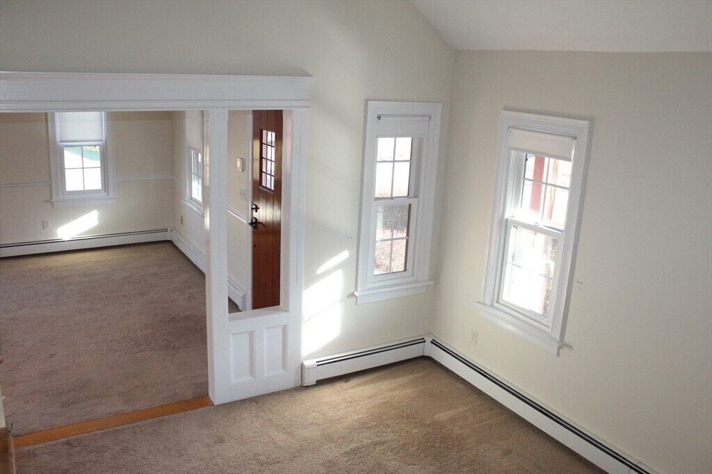 This fully renovated and spacious 1 bedroom duplex offers so much more than apartment living. The sunsplashed kitchen is loaded with cabinets,an extra large dining area and a patio door leading to the private deck overlooking a gorgeous landscaped lot. Sit back and relax in the sunsplashed living room highlighted by a bay window,recessed lights,a ceiling fan and custom woodworking. A full bath includes an oversized shower,a large vanity,laundry hookups and linen closet. The second floor balcony overlooks a home office,making working from home a breeze. Enter the spacious main bedroom with plenty of room for large furniture. It also has 2 closets,one being walk in and plenty of storage space available in the eaves. A second full bath completes the upper level. A mini split AC system takes care of the 1st floor and hot water baseboard heat is included with the rent. Enjoy country living and still have easy access to Providence,train to Boston,shopping and great restaurants. MLS# 73467897