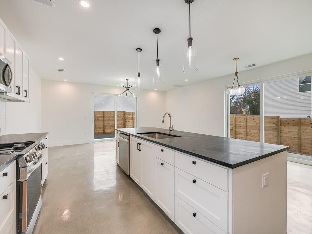 This modern 4-bedroom, 3.5-bath home boasts clean, contemporary architecture. The entryway opens to an expansive living area with polished concrete floors and large windows, allowing natural light to fill the space.The open-concept kitchen features quartz countertops, stainless steel appliances, custom cabinets, and a large island, ideal for both cooking and casual dining. The adjacent living and dining areas provide a seamless flow, perfect for relaxation and entertaining.Upstairs, the spacious primary suite includes a private bath with dual vanities and a walk-in shower. Each additional bedroom offers modern features and ample storage for comfort and convenience.Outside, enjoy a private fenced yard with low-maintenance landscaping and two covered parking spaces under the attached carport. Located in the St. Johns neighborhood, the home is close to parks, shopping, dining, and offers easy access to public transit for effortless travel around Austin. NO HOA2 houses on lo...
