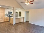 Welcome to 7006 Ivory Key Ct B, Austin, TX 78745, where contemporary living meets comfort. This one-story duplex boasts elegant laminated flooring, setting the stage for a stylish and inviting ambiance. The well-equipped kitchen features stainless steel appliances, ample natural wood color cabinets, and tons of countertop space combining modernity with a touch of warmth. A focal point of the living room is the charming floor-to-ceiling brick fireplace, creating a cozy atmosphere. Natural light flows through the space, complemented by ceiling fans that enhance overall comfort. With two bedrooms and two bathrooms, this home offers a thoughtfully designed layout. The open driveway adds convenience to your daily routine, providing ample parking space. Step outside to the fenced backyard, a private outdoor haven for relaxation and entertainment. Embrace the charm of this property, where every detail contributes to a harmonious and inviting living space in the heart of South Austin. MLS ID 2960081