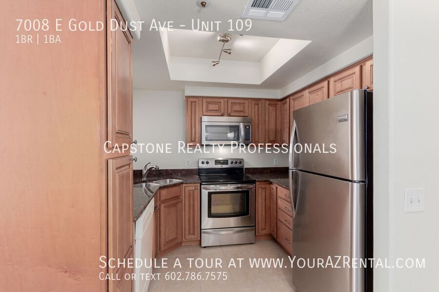 50% OFF 1 MONTHS RENT* Experience the pinnacle of Scottsdale living with this beautiful and modern 1-bedroom, 1-bathroom condo, perfectly situated in the highly sought-after, gated community of Barcelona! This residence offers the ideal blend of style, comfort, and a vibrant resort atmosphere, all in a location that simply can't be beaten. Step into a lifestyle of luxury and convenience. The Barcelona community provides a true resort atmosphere with its meticulously manicured lawns, inviting gas BBQs, shaded ramadas, and two sparkling community pools, perfect for relaxation and recreation. You can walk to an endless array of restaurants, premier shopping, and lively nightlife, as you are perfectly located between the iconic Old Town Scottsdale and the vibrant Kierland area. Inside this move-in ready condo, you'll find a thoughtfully designed space. The bright living area is flooded with natural light and features sleek wood-like flooring, creating a clean and contemporary feel. The heart of the home is a modern kitchen, boasting sleek stainless steel appliances and elegant granite countertops. A convenient eat-in dining area is perfect for everyday meals. Additional key features include the ease of in-unit laundry with a washer and dryer included and a private balcony, your own personal spot for morning coffee or evening relaxation. This home also offers the highly convenient benefit of ground-level access with no stairs, making entry effortless. Prime Scottsdale Location: This prime location places everything you need right at your doorstep. Commuting is a breeze with quick access to Highway 101, and you're just 2 miles from the hospital district. With top-tier shopping, dining, and healthcare all so close, this home truly has it all. Don't miss out on this fantastic opportunity to live in a stylish space with amazing amenities in a prime Scottsdale location. Schedule a tour today and make this your new home! -- Security Deposit: Equal to one months rent Cleaning Deposit: $275.00 Pet Deposit: $200.00 per pet One Time Lease Administrative Fee: $150.00 *For qualified applicants with a lease start date before 11/15/2025.1/2 MONTHS RENT credited to the month of decEMBER 2025. This offer has no cash value and cannot be used towards any other purpose Community Swimming Pool Dryer Fire Sprinklers Pool Non Heated Range/Oven Smoke Detectors Washer