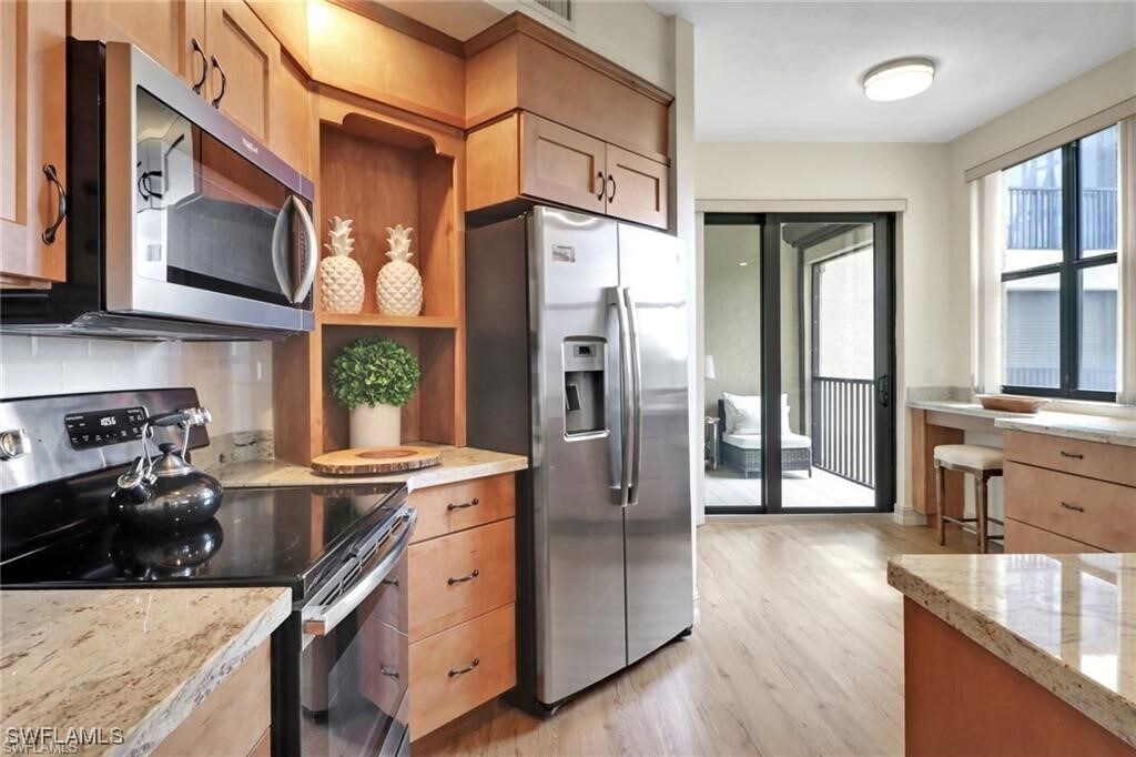 A beautifully renovated two-bedroom condo located in the highly desirable Calais of Pelican Bay. This spacious and bright unit offers an inviting atmosphere perfect for relaxation and entertainment. Calais’s prime location is directly across from the beach tram station,providing easy access to Pelican Bay's two exclusive private beaches. Enjoy abundant natural light with 9-foot ceilings throughout. Relax on your expansive 20-foot screened lanai with picturesque views of the Pelican Bay golf course,perfect for morning coffee or evening relaxation. The open floor plan seamlessly connects the living areas,promoting a spacious feel. With a split bedroom design each bedroom is thoughtfully separated for privacy. The oversized master suite is designed for comfort with a king-size bed,walk-in closet and access to a private screened lanai. The guest bedroom is well-appointed with a queen bed,walk-in closet and private screened lanai ensuring your guests feel at home. Safety features include impact windows and sliding glass doors,along with Storm Smart screens on all three lanais providing shade and security. The condo includes a common elevator,designated under-building parking space,ample guest parking,a bike storage area,and an extra storage locker. Calais residents can enjoy a private community pool and clubhouse,perfect for social gatherings. Living in Pelican Bay offers an exceptional lifestyle with access to three miles of pristine white sand beaches,two private beach clubs offering both casual and fine dining,attended beach services for ultimate relaxation,scenic walking and biking paths throughout the community,tennis and pickleball courts,complete with active leagues,a state-of-the-art fitness center and a Community Center offering cultural programs. Conveniently located near the Artis Center for Performing Arts,Waterside Shops,and Mercato,providing an array of dining and shopping options ensuring you are never far from entertainment and leisure activities. Don’t miss out on this incredible opportunity to spend time in paradise in Pelican Bay.