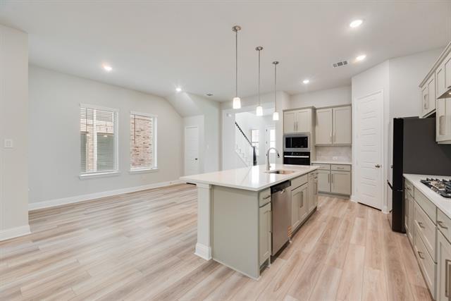 Stunning new construction 3-bedroom home boasting 2,522 sqft of living space and scenic lake views. Located just off I-30 for an easy commute, this property offers the perfect balance of convenience and luxury. The expansive open layout provides plenty of room for family gatherings, complemented by contemporary finishes and large bedrooms. Direct access to neighborhood greenbelts and walking trails makes this an ideal spot for active lifestyles. A must-see for those needing extra space and quick highway access. The first floor features hard wood flooring, dedicated office and powder bath in addition to the Kitchen, Living and Dining spaces. The second floor features 3 bedrooms and modern bathrooms, stunning lake views, full size Laundry Room and additional Living space.