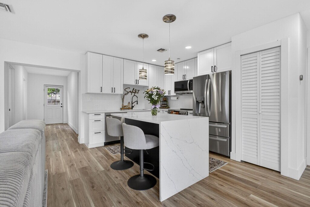 Beautifully renovated 3-bedroom,2-bath home offering approximately 1,600 sq ft of bright,open living space. Designed with both style and functionality in mind,this home features a seamless open-concept layout,an updated kitchen with new appliances,and thoughtfully integrated built-in storage throughout. The spacious primary suite serves as a true retreat,complete with custom his-and-hers walk-in closets and a well-appointed ensuite bath. Major upgrades provide peace of mind,including impact windows,a new A/C system with all-new ductwork,a new 50-gallon permitted water heater,a refurbished and sealed crawl space,and a full 360° security system. Step outside to a large,private backyard with mature fruit trees and refreshed landscapingideal for relaxing or entertaining. located just minutes from the vibrant Nora District,PBI Airport,I-95,Bright line access,CityPlace,Palm Beach Island,pristine beaches,top dining,shopping,and major hospitals. MLS ID B26012138