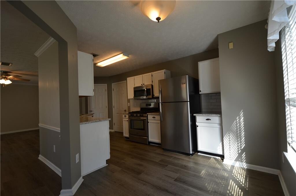 Immaculate home,ready to move in! Grand 2 Story Entry Foyer w/ lots of Light! Luxury Flooring throughout the main level! Spacious Family Room w/ warm fireplace flows into dining Room. The kitchen has tons of cabinets,granite countertops,upgraded appliances,pantry and eating area. Two doors to rear yard. Enormous deck to entertain,along with grass area that goes around the side. Upstairs Primary Bedroom w/ large walk in closet and romantic bath. Two secondary bedrooms,full bath in hallway across from laundry room. Two car garage w/ lots of storage. Min one year lease,will do longer. $50 app fee per adult,Marietta City Schools. Resident responsible for all utilities and maintaining yard. MLS ID 7720352