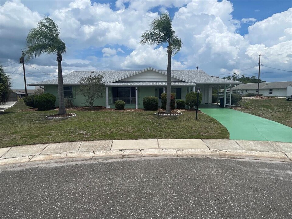 This spacious ANNUAL home is located in the 55+ Community of Sun City Center. It is on a Cul-de-Sac with a covered screened lanai to enjoy the expansive backyard. There also is a covered front porch and entry. Making easy access to the attached carport. The carport is large enough to accommodate a car and golf club and offers a storage room in the back. Other features also include 2 bedrooms/2baths/large living room and a large Florida Room,no rugs and pet friendly. The stack washer and dryer are just off the kitchen for convenience. Rent includes yard maintenance; trash pickup and 1 Community Association Recreation badge. Come and enjoy the active community and warm weather! MLS# TB8466276