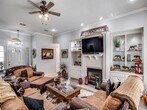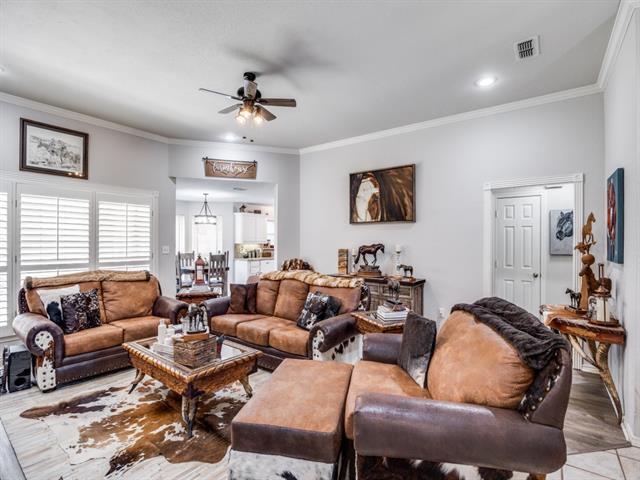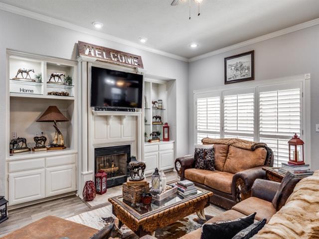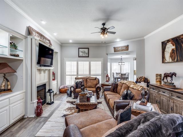 Charming custom built single family home offers 3 bedroom 2 bathroom in the heart of Pilot Point!! Bright and open living area features updated flooring, custom built bookshelves, gas fireplace and plantation shutters. Kitchen and breakfast areas off main living area include extra counter space, gas stove top, microwave, oven and garbage disposal and a view to backyard and covered back patio. Spacious master ensuite with double sinks, separate shower, tile flooring, updated countertops and upgraded tub-shower. Split bedrooms for privacy. Side Garage Entry for easy access. Large backyard is ready enjoy with friends and family! Just minutes from Lake Ray Roberts, parks, trails and restaurants. Immaculate and ready to move in!