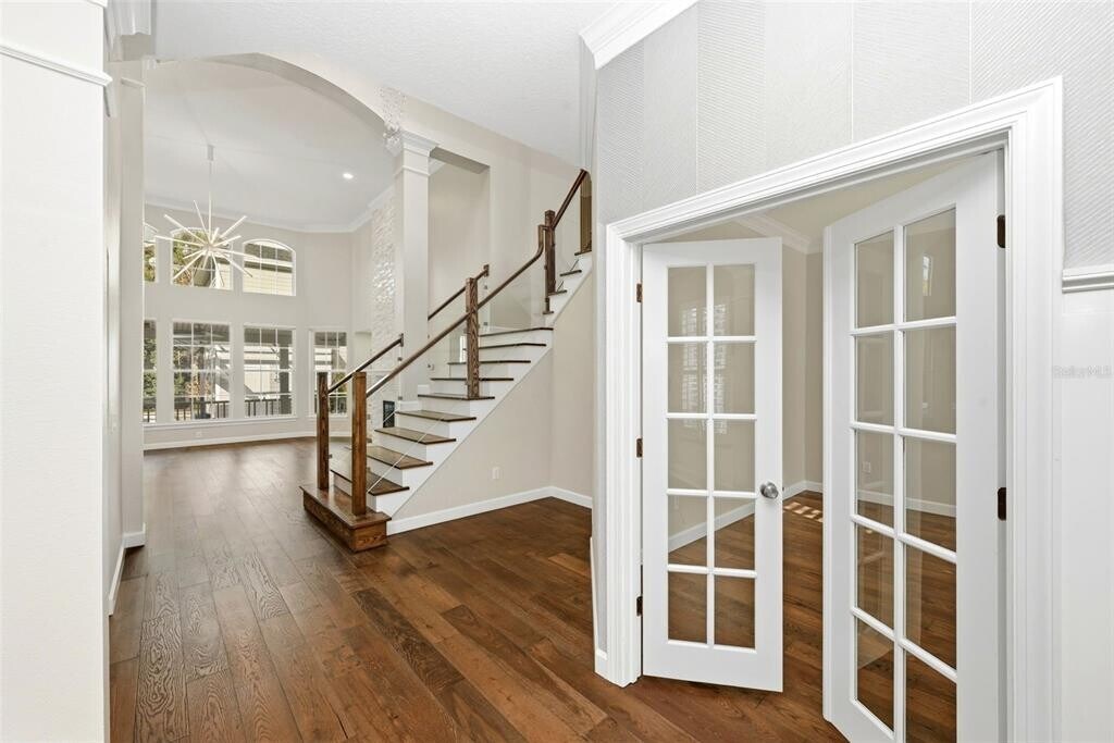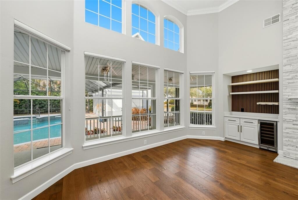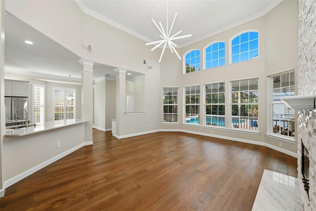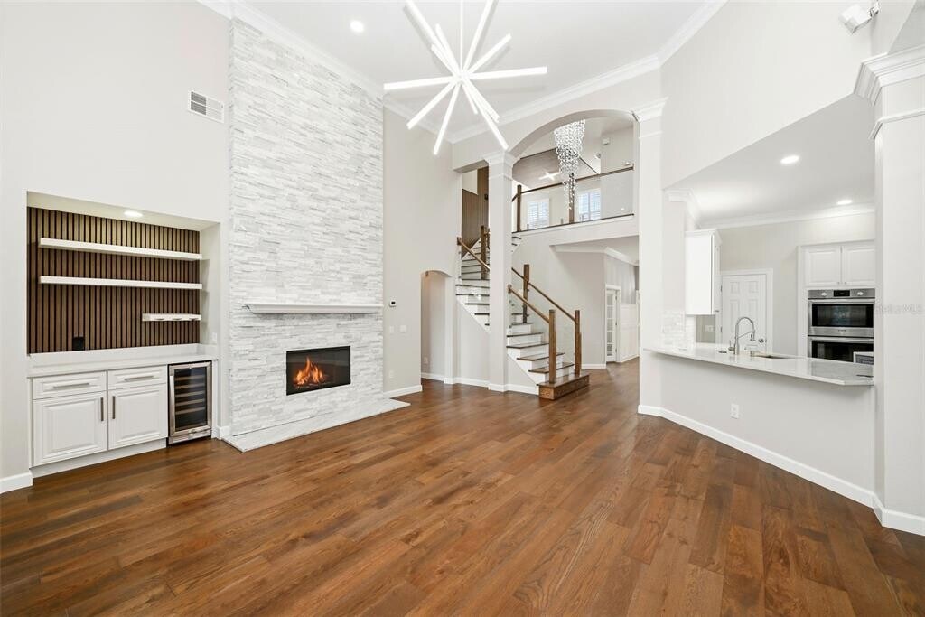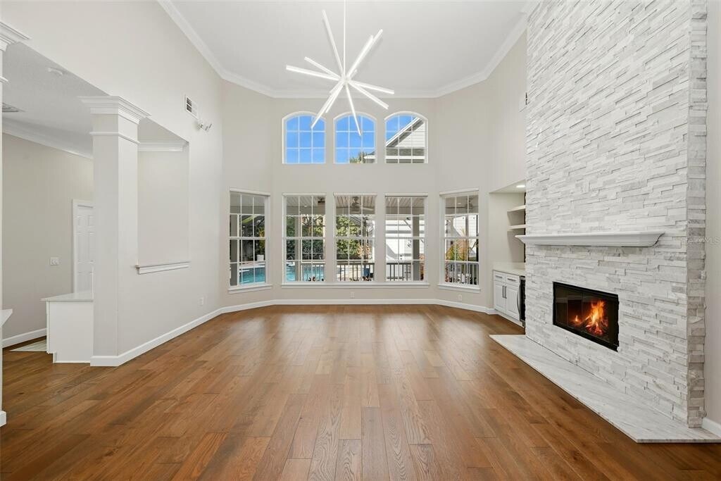 Experience elevated Celebration living in this exquisitely renovated 5-bedroom,5-bath luxury rental home with private pool,offering refined design,exceptional upgrades,and versatile living space throughout. Recently transformed with approximately $250K in high-end improvements,this residence blends timeless elegance with modern comfort in one of Celebration’s most desirable settings. Step inside to find all-new engineered hardwood flooring,designer lighting,and a dramatic custom staircase with glass railing leading to a spacious loft/secondary living area. The main living room showcases a stunning two-story marble fireplace,custom dry bar with wine fridge,and beautiful architectural details ideal for both everyday living and entertaining. The gourmet kitchen is beautifully appointed with premium quartz waterfall countertops,Bosch stainless steel appliances including double ovens,a warming drawer,French door refrigerator,upgraded cabinetry,and a stylish marble backsplash. A convenient butler’s pantry connects the kitchen to the formal dining space,enhancing functionality and flow. The luxurious primary suite is a private retreat featuring a fully remodeled spa-inspired bath finished in marble,a deep soaking tub,zero-entry shower with floating bench,designer lighting,and a custom walk-in closet with elegant built-ins. Secondary bathrooms have also been fully updated with marble and glass tile,designer vanities,and modern fixtures. Outdoor living is just as impressive,with a fully renovated screened pool and spa featuring new Pebble Sheen resurfacing,LED lighting,refreshed landscaping,and upgraded paver decking—perfect for relaxing or entertaining year-round. Additional highlights include a separate studio apartment/bonus suite with efficiency kitchen and full bath,ideal for guests,extended family,or private workspace. The garage has been upgraded with epoxy flooring,custom lighting,and premium storage solutions. Tucked away in Aquila Reserve/Celebration,this exceptional rental offers luxury,space,and lifestyle in a beautifully upgraded home designed for comfort and elegance. MLS# S5144005