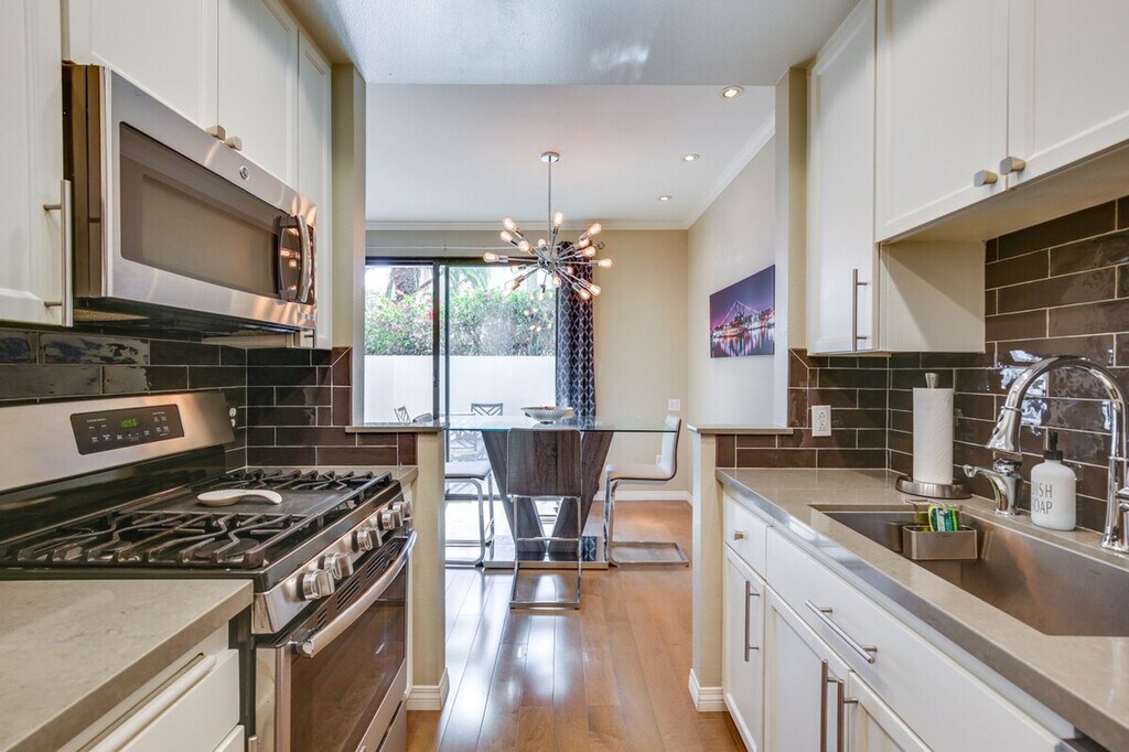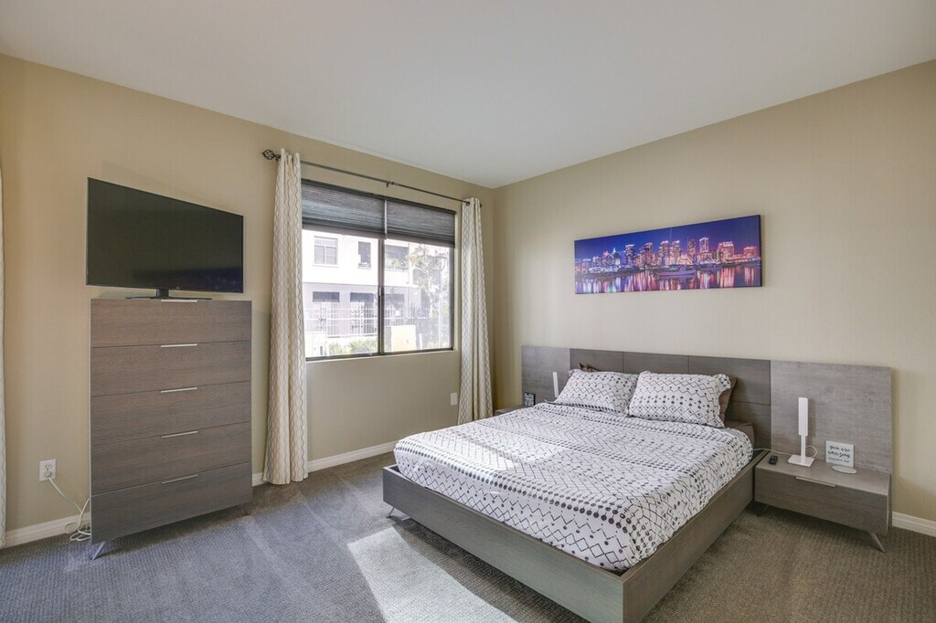 The advertised rate of $7,479/month is the lowest available price, based on a 30 day(s) stay with a move-in date of March 21, 2026. Rates vary depending on the duration of stay, season, and other parameters. For exact pricing and additional pricing components, please visit our website and enter your desired move-in and move-out dates. The rate is applicable when billed upfront; it can be higher if billed in multiple payments. Capture the essence of the West Coast from this vacation rental in Downtown San Diego. Nestled in the Marina District near the Gaslamp Quarter, this 2-bedroom, 2-bathroom condo features Smart TVs, a fully stocked kitchen, and access to the area's top attractions. Explore the city’s expansive cultural hub with stops at the San Diego Zoo, Balboa Park, and Old Town. Afterward, unwind back home on the furnished patio or make a splash in the shared pool. Top it all off with a 13-mile trip to La Jolla Cove. This single-story unit requires 5 steps to enter and offers rooftop views. Enjoy community amenities such as a pool, hot tub, outdoor dining area, and gas grill. The condo features Smart TVs, a fireplace, a dining table, and a workspace. The kitchen is equipped with a dishwasher, fridge, stove and oven, microwave, dishware, flatware, cooking basics, and spices. Free WiFi, central A/C and heat, in-unit washer and dryer, towels, linens, and complimentary toiletries are provided. Parking is available in the garage for one vehicle, with additional spaces available upon request. Additional guest parking is offered on a first-come, first-served basis. Located just 200 feet from Pantoja Park and 0.2 miles from the Seaport Village Trolley Station, this condo offers easy access to the best of San Diego. The Santa Fe Depot is only 0.3 miles away, making it convenient for exploring the city. The vibrant Gaslamp Quarter and cultural attractions like the San Diego Zoo and Balboa Park are within easy reach. The property has a no-smoking, no-pets, and no-parties policy. Guests must be at least 25 years old to book. The homeowner lives on-site in a separate unit with a separate entrance and may be present during your stay. Guests will have access to the entire property via keyless entry. Photo ID may be required upon check-in. The condo includes a workspace and offers free WiFi, making it suitable for remote work. [SI]