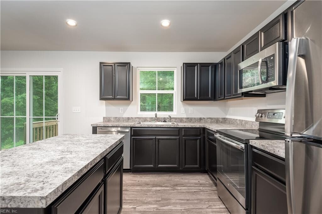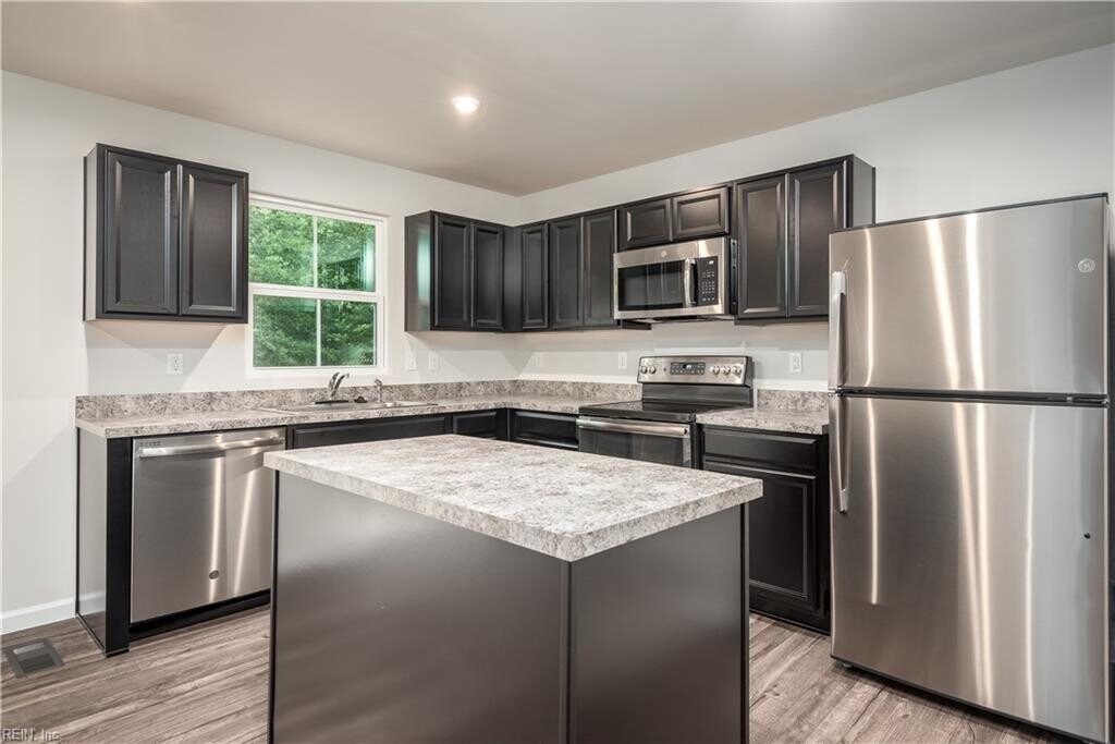 Beautiful 3 level End unit Townhome. Main level is open & airy, with a large, well-designed kitchen that's open to the living area. The optional island provides more workspace & storage. A dining area provides a great space for entertaining or cozy evenings at home. Upstairs are 3 large bedrooms, a laundry closet with full-size washer & dryer, plus a hall bath. The owner's suite features its own full bath & WIC. The lower level provides plenty of storage space or space for a workroom. Short commute to Norfolk Naval & Newport News Shipyards. This new community features a pool, gym, fishing pier, and lake views. Security Deposit financing options through Obligo. We provide a Resident Benefits Package (RBP) to address common headaches for our residents. Our program handles insurance, identity protection, pest control, air filter changes, utility set up, credit building, rent rewards, and more at a rate of $55.00/month, added to every property as a required program.