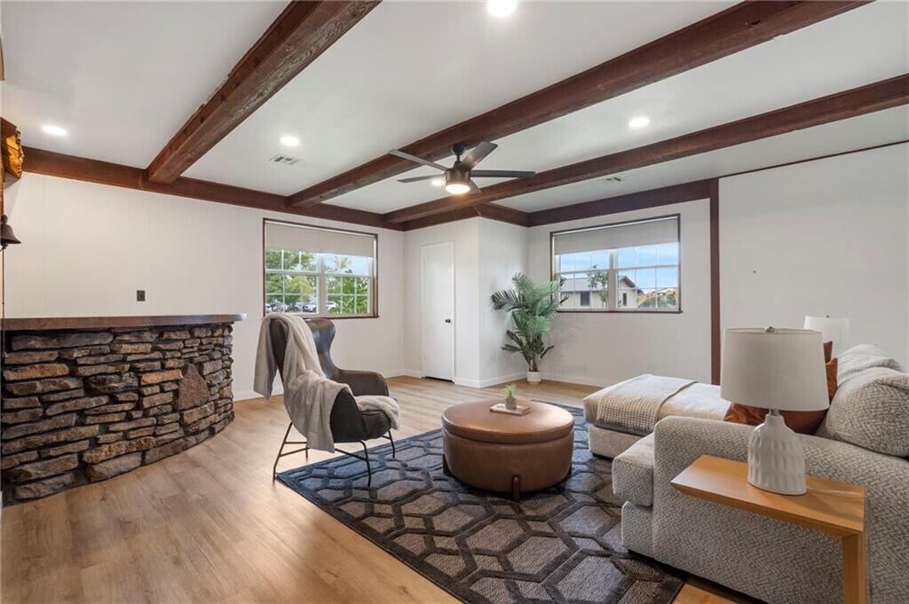 Discover Bentonville living in this updated ranch-style home on a spacious corner lot, less than a mile from Coler Mountain Bike Preserve and just minutes to Slaughter Pen, Downtown Bentonville, and the new Walmart Home Office. The smart split floor plan features multiple living areas, oversized windows, new luxury vinyl floors, and a brick fireplace as the centerpiece. A versatile bonus room provides space for a home office, studio, game room, or guest suite. For added peace of mind, the home features a new roof! Outdoor adventures to vibrant culture and top-rated amenities, everything you love about Bentonville is right at your doorstep. MLS# 1330783