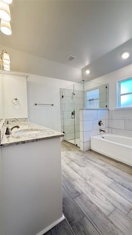 Absolutely gorgeous house built by Scott Ellis Homes! Tile flooring throughout this 3-bedroom, 2 full-bath, 2-car-garage house. Home includes an open 10-foot ceiling living space, granite countertop, large kitchen island, under cabinet lighting, white cabinets, separate shower and tub, dual sinks in master bedroom, ceiling fan in each room, crown molding, blinds, frameless shower, covered back patio, stained fence, sprinklers, landscaping, gutters, etc. The neighborhood is 5 minutes from L3-Harris, I-30, Local Restaurants, and Shopping.