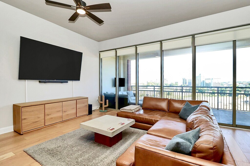 Abundant Uptown city views from both the expansive covered porch and floor to ceiling windows on this 7th floor condo. Updated kitchen includes gas range, painted white cabinets, granite and tile backsplash. Wood flooring throughout. Primary bath has tile shower and soaking tub. Custom walk in closet in primary. Guest Bedroom has access to hall/guest bathroom. Walk in laundry room and separate pantry provide ample storage space. Community features include- pool, hot tub, grill area, fitness room, mail room and concierge located in lobby inside secured building! One designated parking spot in gated garage. Royal Court is convenient to Dilworth, Uptown, SouthEnd and more! Parking Space on Level G2. Pool and grill area on Level 3. Fitness, Community Room and Mailroom on Level 1. Guest parking located on Civil Street to the left of the Royal Court building. Unit located on 7th floor. Tenant responsible for all utilities and abiding by HOA rules of the building. $75 app fee per adult over the age of 18. Apply at