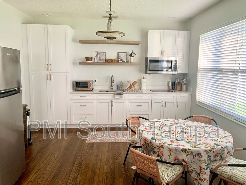 Welcome to 701 S Bermuda Blvd, Unit B, Tampa, FL 33605, a rare opportunity to enjoy waterfront living in Tampa in this unfurnished 1-bedroom, 1-bathroom newly renovated home with relaxing scenic water views. Start your mornings or unwind in the evenings on your private covered patio, overlooking the waterfront setting and spacious lawn area perfect for enjoying fresh air and peaceful surroundings. Inside, this home offers a comfortable layout with a living room and dining room, plus ceramic tile flooring, air conditioning, ceiling fan, and window blinds for added comfort and privacy. The kitchen delivers both style and function with quartz countertops, a modern electric induction stove top, microwave, refrigerator, freezer, and ice maker, plus a pantry for extra storage. A convenient kitchenette space adds flexibility for everyday living. Landscaping and Utilities (Electric, Water, Trash) are included! No HOA. Additional highlights include a convenient in-unit washer and dryer, and on-street parking with 2 spaces. Super convenient location close to downtown Tampa (6 minutes) work & play attractions: Amalie Arena (7 mins), Tampa Aquarium, Channel District, Riverwalk, Armature Works (10 mins), Ybor Historic District (5 mins), Tampa General Hospital (8 mins). Close access to major transportation routes: Selmon, highways 4 & 275 make easy commute north to USF, Busch Gardens, TPA (15 mins) or over the bay to the beautiful beaches of St. Pete & Clearwater (30 mins). The home is situated in a residential neighborhood on a single lane road across the water. Five minute walk to DeSoto community park featuring a water park, basketball courts, playground & picnic areas. Embrace the allure of waterfront living and make this enchanting oasis your new home sweet home. Schedule a showing today!