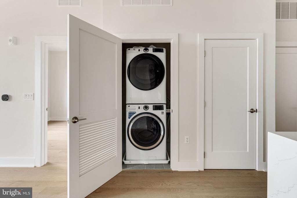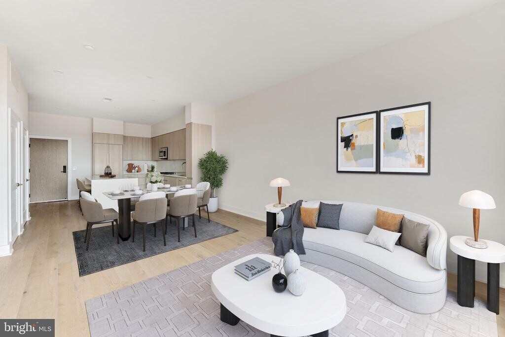 Built in 2023 and presented in like-new condition, this spacious one-bedroom, one-and-a-half-bath residence at The Dylan offers modern comfort and exceptional convenience in the heart of Potomac Yard. The thoughtfully designed floor plan features wide-plank white oak flooring, abundant natural light, and generous living and dining spaces that create an easy, open flow for everyday living. The chef’s kitchen is beautifully appointed with sleek cabinetry, a wine refrigerator, and ample counter space, opening seamlessly to the main living area. The spacious primary suite offers a peaceful retreat and includes a custom-designed walk-in closet with cabinet backlighting and a beautifully finished bath with a large walk-in shower. A separate half bath provides added convenience for guests. Two reserved garage parking spaces (C190 and C184) are a rare and valuable feature. Residents of The Dylan enjoy a thoughtfully designed collection of amenities, including a fully equipped fitness center, a crafting studio, a pet-washing station, a secure bike room, and a welcoming community lounge. The rooftop terrace is a standout feature, offering grills, comfortable seating areas, and sweeping views—an exceptional setting for relaxing or gathering with friends. Ideally located just steps from the Potomac Yard Metro Station, the home provides easy access to Washington, D.C., and Reagan National Airport. Del Ray’s Mount Vernon Avenue, with its popular restaurants, cafés, and shops, is just minutes away, as are the waterfront, trails, and historic streets of Old Town Alexandria. Pets are considered on a case-by-case basis.