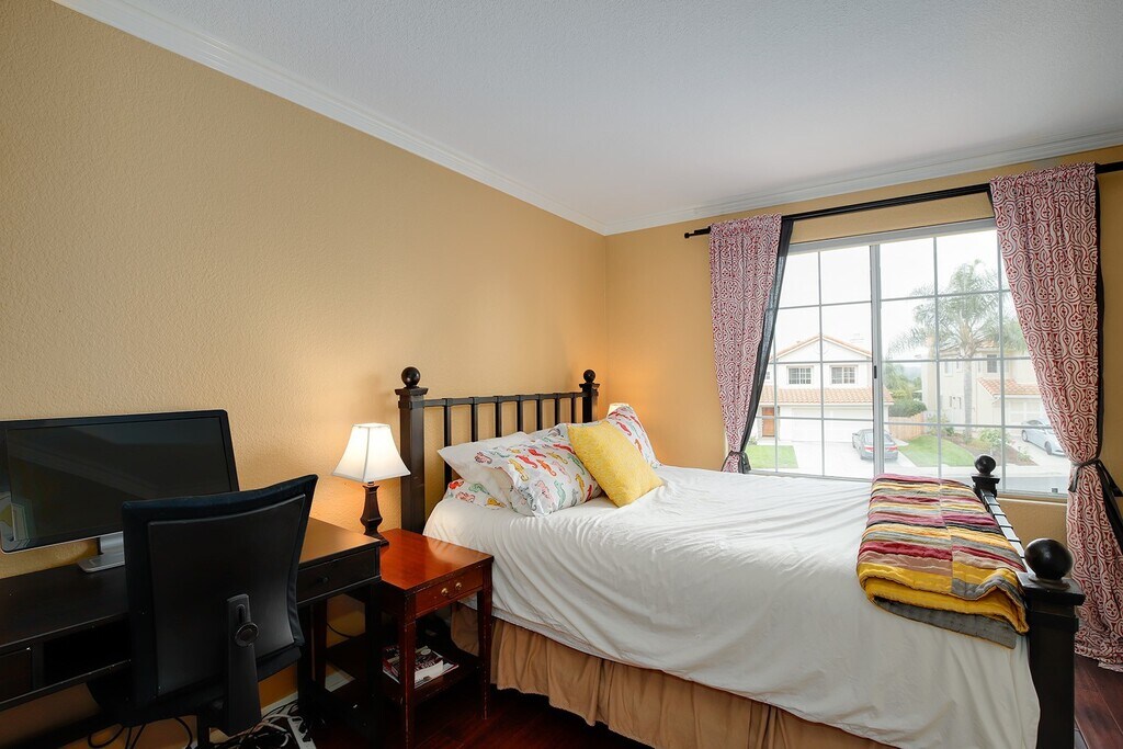 Royce Realty presents a beautiful 3 bedroom plus master retreat, 2.5 bath detached home on a cul-de-sac nestled in the Alga Hills community of Carlsbad. Situated on a spacious and private lot complete with a large patio, mature landscaping, peaceful vignettes, garden beds with organic fruits and vegetables plus an irrigation system that takes care of it all. Over 2000 sqft of living space featuring distressed dark walnut floors, slab granite kitchen counters, crown moldings and vaulted ceilings, travertine floors in baths, porcelain tile floors in kitchen and family room, custom window coverings, interior laundry room, reverse osmosis water system, A/C, solar system offering a fixed electric bill. Master retreat has own closet and window, but better suited as an office or baby area, not as a separate bedroom based on how you access it. Neighborhood features multiple parks, playgrounds, and two swimming pools. Schedule a showing today! Note: $150 fixed electricity charge added to rent for solar system.