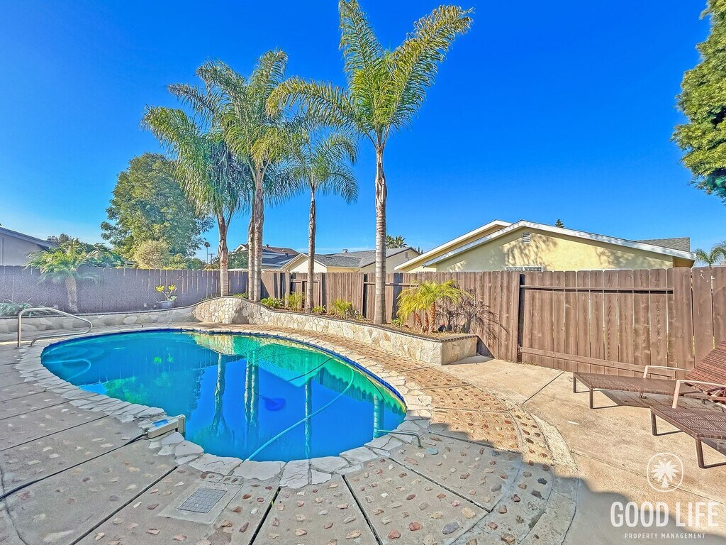 AVAILABLE NOW! For complete lease terms and how to apply, please go to our website. 3D TOUR: Welcome to this stunning 3-bedroom, 2-bathroom home located in Clairemont! This property boasts a range of modern amenities designed to enhance your living experience. The kitchen is equipped with top-of-the-line stainless steel appliances, perfect for those who love to cook. The home also features a private patio, ideal for outdoor dining or simply enjoying the California sunshine. For your convenience, the property includes in-unit laundry facilities and a spacious 2-car attached garage. One of the standout features of this home is the private pool, providing a perfect spot for relaxation or entertaining. The home also comes with an efficient A/C system to ensure your comfort throughout the year. Experience the perfect blend of comfort and convenience in this San Diego gem. FREQUENTLY ASKED QUESTIONS - WASHER/DRYER: Included - AIR CONDITIONING: Included - PARKING: 2-Car Attached Garage - UTILITIES INCLUDED: - GARDENER INCLUDED: Yes - PET RESTRICTIONS: Up to 2 pet(s) are considered for an additional $50 monthly pet rent, per pet APPLICATION, LEASE TERMS, AND FEES - APPLICATION FEE: Non-Refundable $55/adult (all occupants 18+ need to submit an application) - APPLICATION TURNAROUND TIME: 2-3 business days - LEASE LENGTH: 1 year - SPECIAL LEASE PROVISIONS: - NON-WARRANTIED: The following items or personal property are included in the Premises without warranty and Landlord will not maintain, repair or replace them: Built in stereo system (not functional), security system, patio furniture (functional), water dispenser (functional), ice maker (functional), water filtration system (not functional), BBQ, Outdoor TV. - RENTER'S INSURANCE: Tenant must carry renter's insurance w/ minimum $100K liability SUMMARY RENTAL CRITERIA -We look for favorable credit history, good references, sufficient income, and the ability to move-in within 14 days of applying -If approved, we require one full month's rent, plus security deposit to move-in -Please read the full rental criteria when submitting an application. Christian Best DRE #02155444 Good Life Property Management, Inc. CalDRE #01929564 Price, terms, offerings, availability subject to change. All information deemed reliable, tenant to verify all. *Good Life Property Management, Inc. adheres to all Fair Housing Laws*