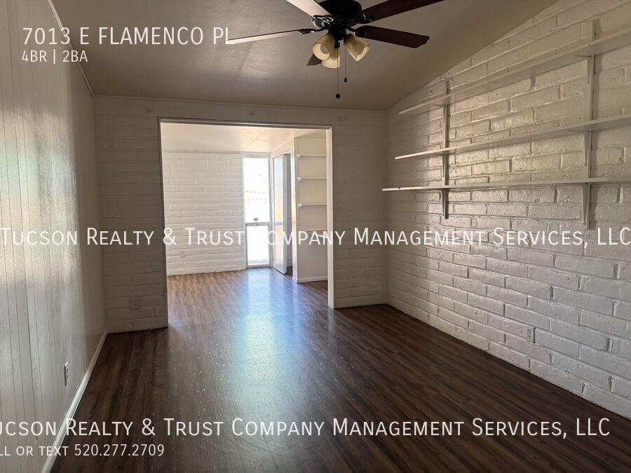 Welcome to this spacious 4-bedroom, 2-bathroom house located in the vibrant city of Tucson, AZ. This home offers a generous living space with large bedrooms and an office/den area, perfect for those who work from home or need an extra space for hobbies. The house is equipped with AC and washer/dryer hook-ups for your convenience. The covered patio and huge yard provide ample outdoor space for entertaining or simply enjoying the beautiful Arizona weather. The property also features covered parking to protect your vehicle from the elements. Skylights throughout the home allow for an abundance of natural light, creating a bright and welcoming atmosphere. This house is not just a place to live, but a place to love! To schedule your Showing now, call . All information deemed reliable but not guaranteed. Please contact our office to confirm pricing, availability and details at . We do not advertise on Craigslist or Facebook, nor would we require funds to be wired or any funds paid through a payment app on your mobile device. Tucson Realty & Trust Co. Management Services, L.L.C. complies fully with all federal, state and local Fair Housing laws. $250.00 Non-Refundable pet fee for the first pet, $150.00 Non-Refundable Pet fee for each additional pet. $25.00 per month, per pet, pet rent. Ac Covered Patio Huge Yard Large Bedrooms Office/Den Area Skylights Washer/Dryer Hook Ups