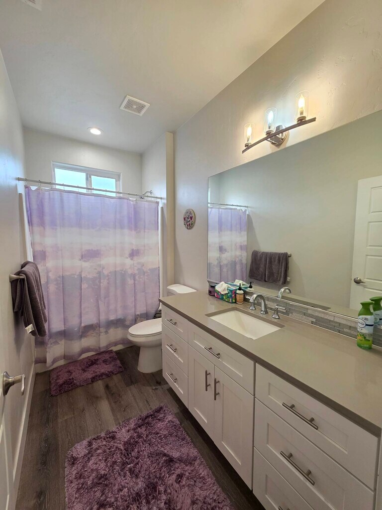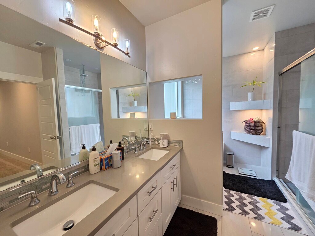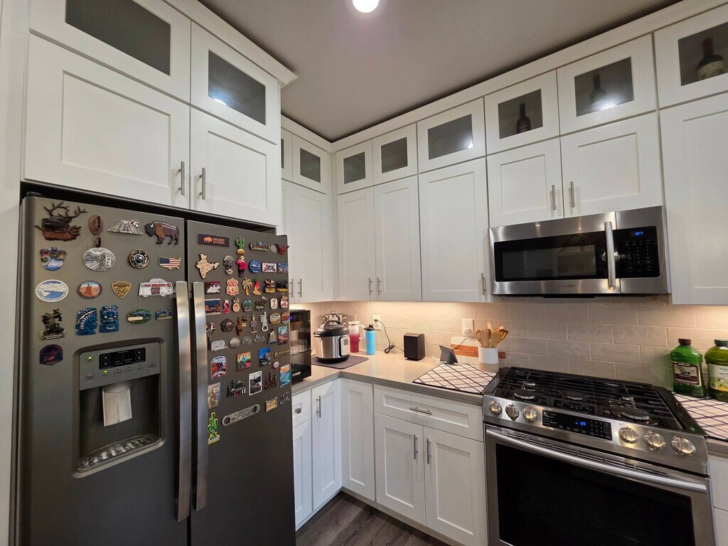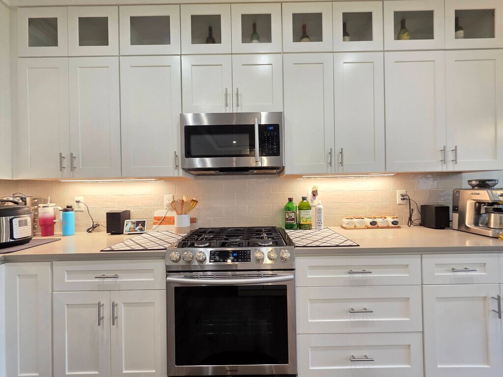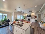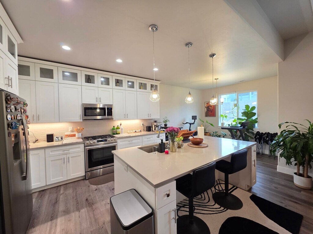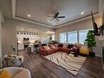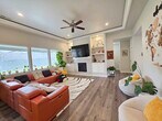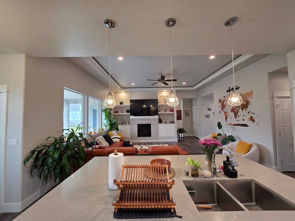 Tucked just off the 395 and I-82 interchange in Kennewick's desirable Southridge area, this thoughtfully designed single-family home blends comfort, style, and everyday functionality in all the right ways. With a split-bedroom layout, open living spaces, and well-chosen finishes throughout, this home feels both welcoming and refined from the moment you arrive. Inside, the heart of the home is the open-concept living, dining, and kitchen area—designed for connection without sacrificing defined spaces. The living room is anchored by a gas fireplace with tile surround, a mantle, and built-in shelving and cabinetry on both sides, creating a natural focal point. A TV mount is already installed above the fireplace for tenant use, while a wall of oversized windows fills the space with natural light and offers a clear view of the backyard. Recessed ceiling details with crown molding, integrated lighting, and a ceiling fan add both character and comfort. The kitchen is as functional as it is beautiful. Quartz countertops, a tiled backsplash, and under-cabinet lighting set the tone, while tall cabinetry extending to the ceiling provides abundant storage—complete with glass-front upper cabinets for decorative touches. A large island serves as the hub of the space, housing the sink, dishwasher, additional storage, and bar seating, all accented by pendant lighting. The kitchen also includes a pantry with generous storage and comes fully equipped with a refrigerator, dishwasher, microwave, and gas range. From here, the dining area flows seamlessly outdoors to the covered patio, making indoor-outdoor living easy and natural. Two secondary bedrooms are located off the kitchen, offering separation from the primary suite. Both bedrooms overlook the front of the home—one featuring a walk-in closet and the other an accent wall for added personality. The nearby full bathroom is a well-appointed shared space with tile flooring, a large vanity, ample counter space, and a full tub/shower combination, all finished with coordinating cabinetry and countertops that match the rest of the home. On the opposite side of the living room, the primary suite provides a quiet retreat. The bedroom is spacious and includes recessed lighting, a ceiling fan, and direct access to the covered patio and backyard. The en suite bathroom is designed with comfort in mind, featuring a private toilet room, a large walk-in closet with built-in shelving, dual-sink vanity, tiled floors, and a spa-inspired bathing area. A soaking tub, a full step-in shower with dual shower heads—including a rain shower head overhead—and tile that flows seamlessly from floors to walls create a cohesive, elevated feel. Built-in tiled corner shelving with integrated lighting adds both convenience and visual interest. Additional features include a dedicated laundry room with cabinetry, a utility sink, and full-size washer and dryer hookups (washer and dryer not included), a coat closet near the garage entry, and a spacious three-car garage with room for parking and extra storage. Outside, the home offers a large, open backyard with an in-ground irrigation system and a covered patio accessible from both the dining room and primary suite. The backyard is not fenced, allowing for flexible use of the space. The front porch features a small sitting area with steps leading up to the entry—an inviting detail that adds charm and curb appeal. This home is only available through KeyOne Property Management and offers a rare combination of thoughtful design, comfortable living, and a prime Southridge location. Pets possible upon owner approval with additional rent and/or fees. One time Admin fee of $150 for all new leases.
