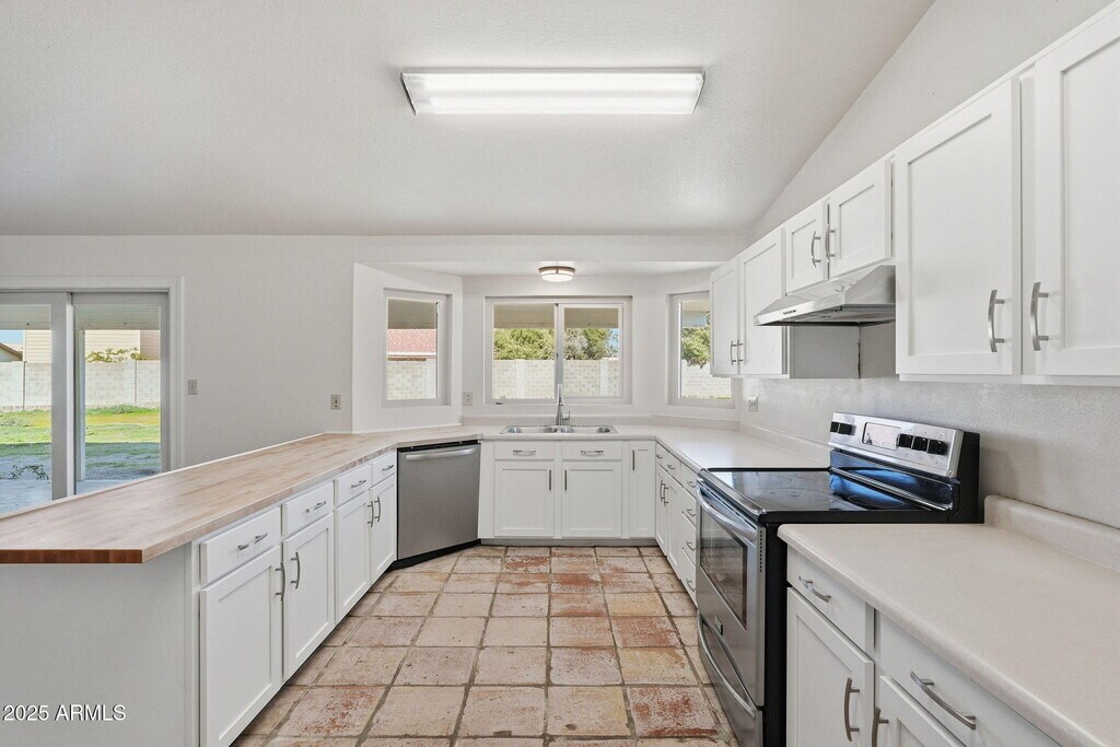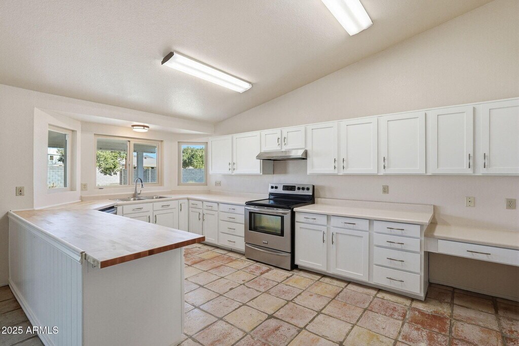 At 2,070 sq. feet,4 bedrooms,2 baths,this spacious ranch home with vaulted ceilings boasts a new roof,a new HVAC system (with ducts!),a complete cabinet remodel,and brand new windows and doors throughout! No expense was spared in updating this home for your comfort and enjoyment. Only minutes away from the Tonto National Forest,as well as Boeing and Falcon Field,and right across the street from Mesa Community College East Campus,nestled into a quiet end of the street,for maximum privacy. With an expansive front AND back yard,this home is perfect to park your RV or other vehicles.