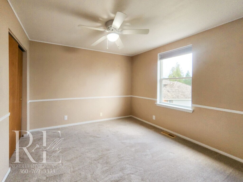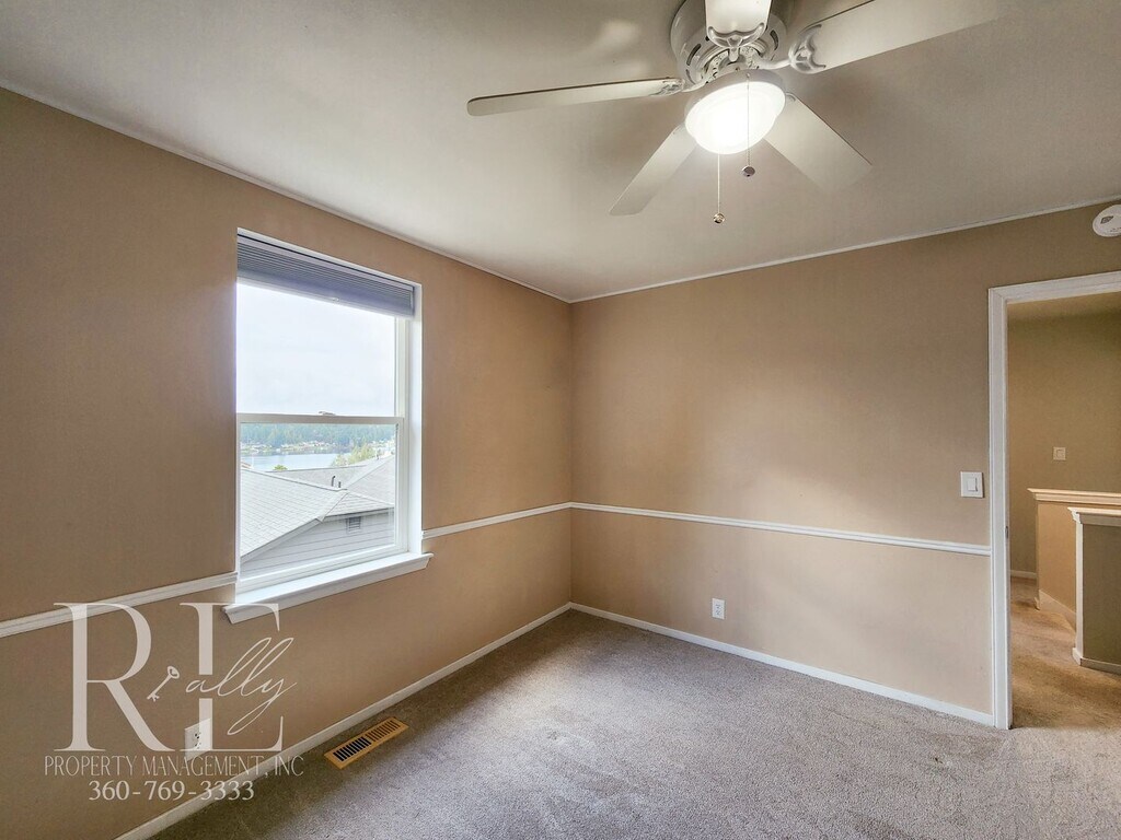 This beautifully upgraded 3-bedroom, 2.5-bath home offers space, style, and comfort—with private access to the lake and a peaceful view of the Puget Sound from your own deck. Inside, you’ll find a thoughtful floor plan with two separate living areas, including a cozy gas fireplace and custom built-in bookshelves that invite both functionality and charm. The heart of the home is a fully updated kitchen featuring sleek appliances, a separate oven and range top, dishwasher, and microwave—ideal for home cooking or casual entertaining. Natural light floods the main living area through an oversized picture window, enhanced with tasteful curtains already installed. Upstairs, the standout primary suite feels like a private retreat with vaulted ceilings, a decorative accent wall, dual sinks, and direct access to a secluded deck for morning coffee or evening wind-downs. The home is equipped for comfort in every season, with ceiling fans in the bedrooms and a heat pump providing efficient heating and air conditioning. Enjoy a spacious, fully fenced backyard—perfect for relaxing outdoors or hosting friends—with plenty of room to move, play, or garden. --> 2 living spaces including gas fireplace and built-in bookshelves --> Upgraded kitchen with full appliance package and separate cooktop & oven --> Vaulted-ceiling primary suite with private deck and Puget Sound view --> AC via heat pump, ceiling fans in bedrooms, laundry in unit --> Fully fenced yard with lake access and peaceful outdoor setting. LANDSCAPING INCLUDED Managed by REally Property Management, offering a 12-15 month initial lease term followed by term renewals. Tenant is responsible for paying all utilities, $10/mo credit reporting fee which boosts credit score, & renters' liability insurance. We require the full 1st month's rent and full deposit to move in. For managed rentals, we offer a deposit alternative that allows you to make small, long-term payments on a deposit through a 3rd-party provider, if qualified. $55 application fee per person, you must apply on RPM web site www , re ally pm , c o m. We DO NOT accept comprehensive reusable reports or Zillow apps. Strictly enforced no-smoking policy. Pets okay; pet screening required at $25 per pet. If approved, a $450 pet fee per pet applies. Limit 2. Available Immediately. Conveniently self-schedule your viewing on our showing link below or on our web site! htt ps:// calendly .co m/ rpm rentals