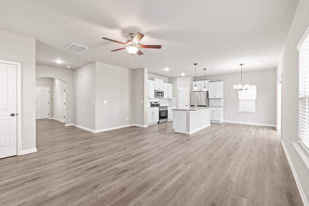(Coming Soon) Experience the benefits of newer construction without the wait in this beautifully maintained home in the sought-after Stoneygreen community. Thoughtfully designed with modern finishes and a functional layout, this home offers comfort, style, and move-in ready convenience. The main level features durable Luxury Vinyl Plank flooring throughout, creating a seamless flow between the open-concept living room and kitchen. The chef-inspired kitchen is the centerpiece of the home, complete with granite countertops, a spacious center island, shaker-style white cabinetry, and stainless steel appliances. A cozy breakfast area connects effortlessly to the generous living space, highlighted by a sleek linear electric fireplace. Upstairs, enjoy a versatile loft, perfect for a secondary living area, home office, or play space. The primary suite serves as a private retreat with a large walk-in closet, dual vanity, and a beautifully appointed walk-in shower. Secondary bedrooms are well-sized and share a full bathroom, while the upstairs laundry room adds everyday convenience with a high-end washer and dryer set. Step outside to a spacious backyard with a concrete patio, ideal for entertaining, relaxing, or creating your own outdoor oasis. This home offers modern living in a growing community, combining style, space, and value.