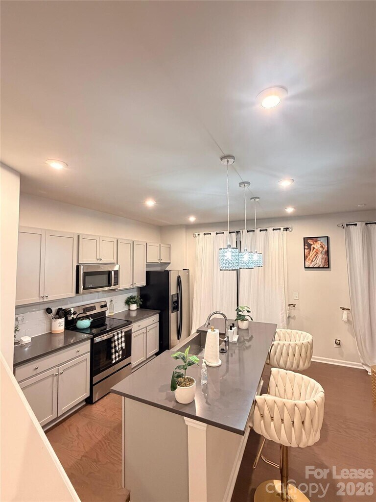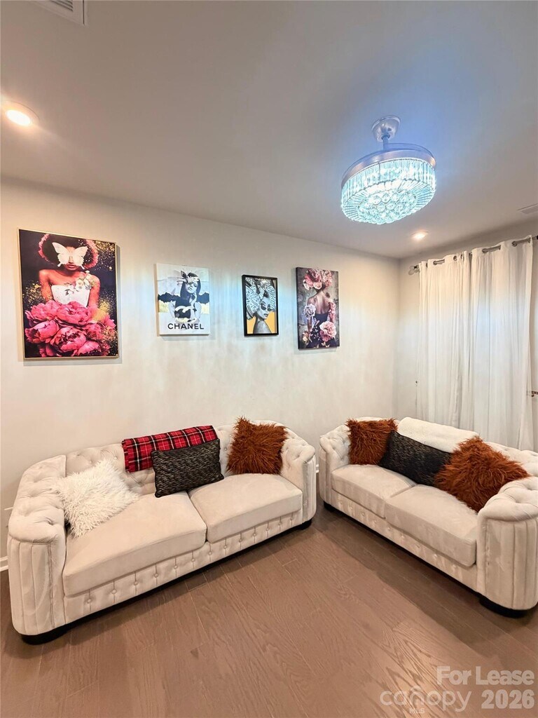 Welcome to Fifteen 15 Cannon! This modern two-story townhouse features 2 bedrooms,2.5 bathrooms,and a one-car garage. The entryway leads into a spacious family room with elegant wide-plank hardwood floors,flowing seamlessly into the dining area and kitchen. The kitchen offers a walk-in pantry and a sliding glass door that opens to a large back patio—perfect for entertaining. The main level also includes a bright breakfast area,a convenient half bath,and a drop zone just off the garage. Upstairs,you’ll find a generous hallway,a laundry area with a high-end washer and dryer,and a linen closet for added storage. The primary suite boasts a large walk-in closet and a private ensuite bath featuring a double vanity,a seated shower,and floor-to-ceiling tile. The secondary bedroom also includes a walk-in closet and easy access to a full bathroom with a tub/shower combination. This new community offers scenic walking paths throughout and provides easy access to I-85,NoDa,UNCC,Uptown,as well as a variety of shopping and dining options. MLS ID CAR4344262