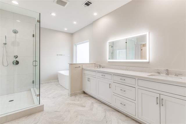 Beautiful home in quiet, cul-de-sac-type location in Preston Hollow. Completely renovated from top to bottom in 2023, every floor, ceiling, and wall surface was touched... roof, HVAC, landscaping, everything. Open floor plan with soaring ceilings, fabulous natural light. Primary and guest bedroom down, 2 BR's up. Loaded kitchen with island & stainless appliances. Breakfast area just off kitchen. Beautiful fenced back yard with artificial turf. 2-car attached garage.
