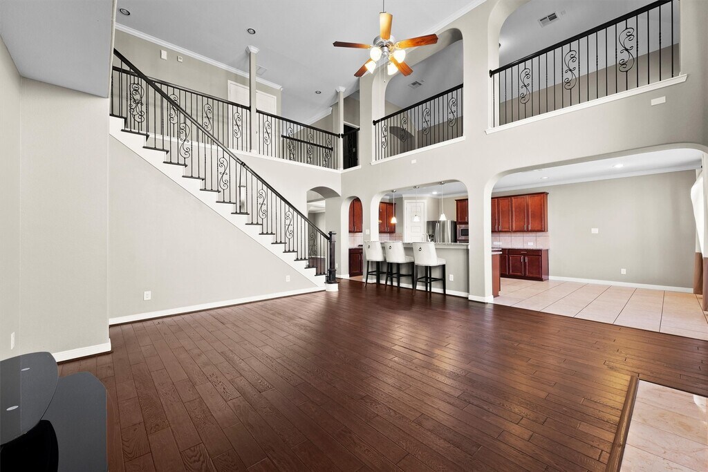 Immaculate two-story home located in the highly desirable Twin Falls community. The elegant front door opens to the formal living,dining,study,& gorgeous hardwood floors. The kitchen boasts espresso cabinetry with crown molding,granite countertops,built-in appliances and a massive island. Relax in the spacious family room,w/ stone fireplace,dramatic high ceilings and tall windows overlooking the backyard,pool,and hot tub. Oversized primary suite/bath; with garden tub,shower,& large closet. Wrought iron balusters & staircase lead to the upstairs game room,media room,secondary bedrooms and access to balconies.The backyard is perfect for year long entertaining with covered patio and the custom heated pool and hot tub. MLS# 44963826