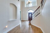 Sweeping HUGE corner lot backs to creek, jogging and bike paths. Nestled in a neighborhood where just a glance and you'll know it's a community where people care. Owner just installed new cook top, carpets, hardwoods and freshly painted. Showplace of the home is this kitchen featuring gas cook top, double ovens, SS appliances, island, compacter, and open to the living room. Bright breakfast nook to enjoy early coffee and start your day on a cheerful note while overlooking extra deep lot and views of the creek. Primary bedroom has been updated and boasts jetted tub, frameless shower, duel vanities, travertine tile, duel closets. It'll be your own private sanctum. Corner gas fireplace sets the tone of friendly warmth in this spacious living room for gracious entertaining. At last, a dining room large enough to make every Holiday gathering a breeze. You name it... this family room is big enough for almost any activity. Ideal den for the times you need to work or relax quietly. Patio has been extended to allow outdoor gatherings plenty of space. Energy efficient tankless water heater, wooden shutters, radiant barrier, insulated garage, security lights, electronic gate. School bus stop right out the door.