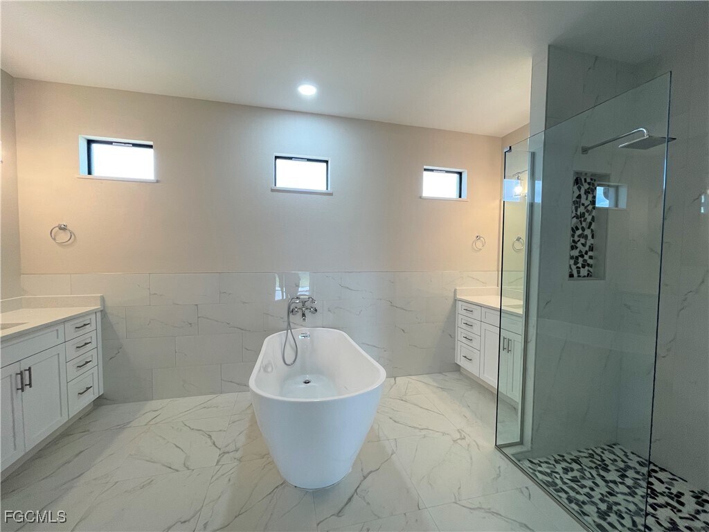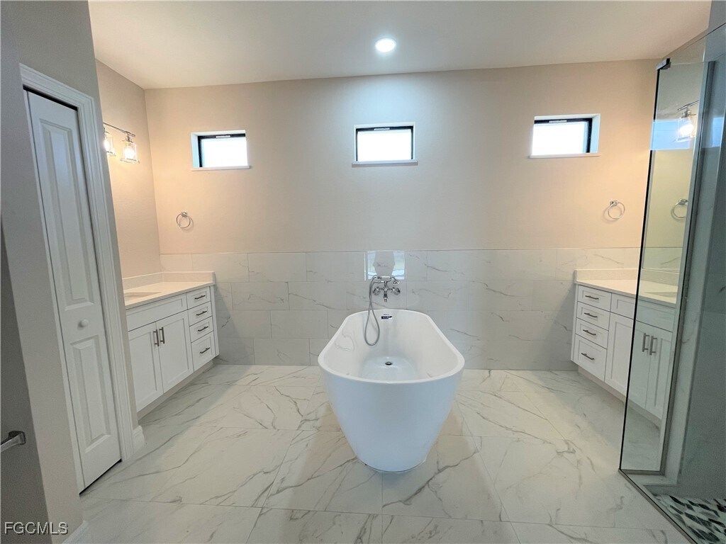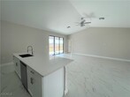 This is a gorgeous newer 4 Bd/2ba Home. This home has all the bells & whistles,including elegant 24 x 24 porcelain tiles floors throughout. Lovely kitchen with Quartz Countertops and custom design tiled backsplash. Equipped with beautiful Stainless Steel Appliances. Breakfast bar features custom design tiles installed over knee wall. Upgraded stylish light fixtures throughout. Spacious master bedroom with sliding glass doors leading to the outside and two walk-in closets. Amazing master bathroom with large tiled shower featuring a lovely mosaic waterfall effect. Separate elegant vintage/stand-alone tub. Two individual quartz countertops with undermount sinks. Substantially large screened-in lanai. Connected to CITY WATER. Convenient location! THIS HOME HAS IT ALL!!!