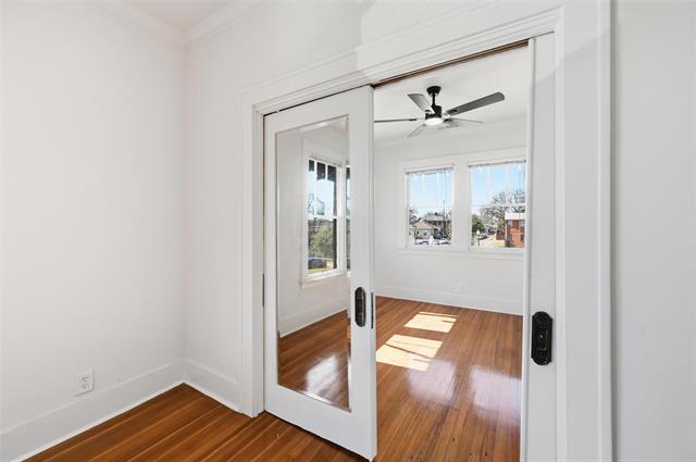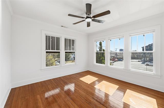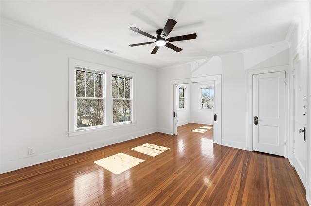 Beautifully updated apartment in a classic 1920s fourplex, blending timeless character with modern comfort. Original hardwood floors, doors, detailed moldings, and other period touches have been thoughtfully preserved, while fresh upgrades bring a clean, contemporary feel. If you love vintage pocket doors with beveled glass, classic door knobs, and timeless penny tile, this one is for you. Large, open rooms are filled with natural light, creating an airy and welcoming atmosphere throughout. The renovated kitchen features quartz countertops, brand-new stainless steel appliances—including refrigerator—along with all new lighting and plumbing fixtures. Fresh paint throughout enhances the home’s bright, move-in-ready appeal. Each unit includes a private utility room with washer and dryer, plus one assigned off-street parking space. Perfectly positioned overlooking Bishop Arts and the beautiful Kidd Springs neighborhood, this home offers classic charm, modern updates, and an unbeatable location. Landscaping is planned next and includes sitting areas and greenery.