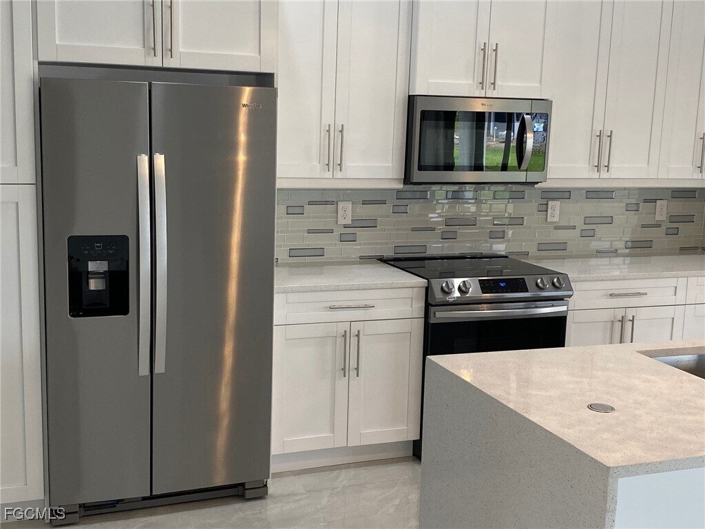 A verry modern home with 24x24 tiles,waterfall quartz countertops,stainless appliances,electric fireplace,and hurricane windows