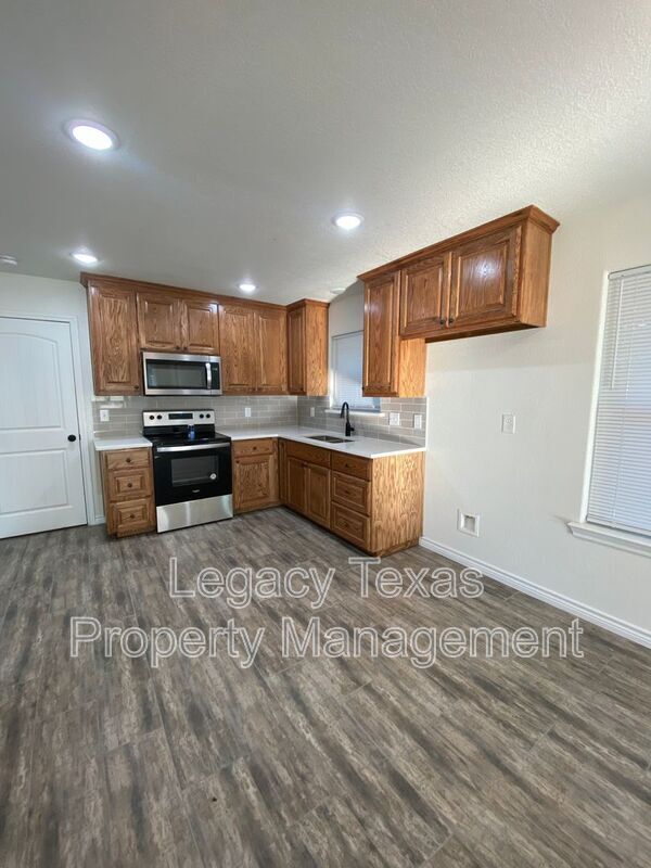 Welcome to this completely updated 2-bedroom, 1-bathroom home, ideally located on a corner lot in Cleburne, TX. This home boasts an open concept design, seamlessly blending the living, dining, and kitchen areas. The kitchen is a chef's dream with its granite countertops, wood cabinets, and a tile backsplash that adds a touch of elegance. A microwave is included for your convenience. The entire home is adorned with wood-look tile flooring, offering the beauty of wood with the durability of tile. The property also includes washer and dryer connections, ensuring laundry days are a breeze. The home comes with a 1-car garage, providing secure parking or additional storage space. This home is a perfect blend of style, comfort, and convenience. Amenities: Washer & Dryer Connections, Granite Countertops, Microwave, CORNER LOT, 2 bedrom 1 bathroom, Wood look tile throughout, open concept, 1 car garage, wood cabinets, tile backsplach