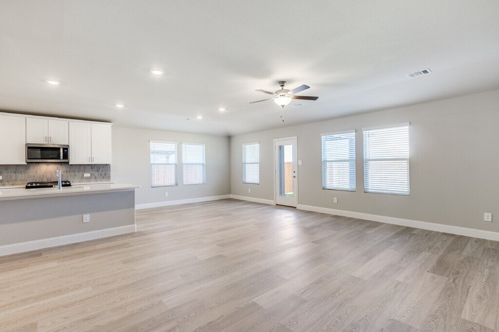 This brand-new home, never lived in boasts energy-saving features to keep your utility bills low. The open floorplan seamlessly connects the living area to a covered patio, perfect for indoor-outdoor entertaining. The Lush package offers a sleek look with white cabinets, quartz countertops, and light-colored flooring with plush carpeting in the bedrooms.