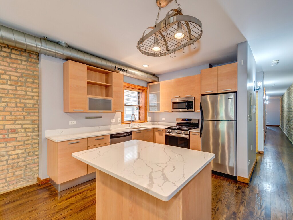 Beautifully updated 2-bed,2-bath condo in a classic brick building on a quiet,tree-lined street in East Rogers Park,close to Lake Michigan,providing gorgeous beaches and park space for residents to enjoy This bright,high first-floor home blends vintage charm with modern upgrades,featuring exposed brick,dark hardwood floors,and abundant natural light from three exposures. The open-concept layout leads to a spacious,updated kitchen with quartz countertops,center island,stainless steel appliances,newer stove,and a brand-new Maytag dishwasher 2025,plus updated lighting and cabinetry. Both bathrooms were fully remodeled in 2020,including a stylish primary suite with walk-in shower and dual faucets. Additional upgrades include in-unit laundry with newer washer/dryer and a new central AC 2026. A flexible rear room is perfect for a home office,den,or mudroom. Enjoy your large west-facing deck-ideal for sunsets,grilling,and entertaining. Building features secured entry,gated parking #3,and storage. Prime location near Loyola University Chicago,Metra,CTA Red Line,restaurants,and shopping. Gated parking available $100/month. Credit score 700+. Non-smoking unit. MLS# MRD12546671 Based on information submitted to the MLS GRID as of [see last changed date above]. All data is obtained from various sources and may not have been verified by broker or MLS GRID. Supplied Open House Information is subject to change without notice. All information should be independently reviewed and verified for accuracy. Properties may or may not be listed by the office/agent presenting the information. Some IDX listings have been excluded from this website. Prices displayed on all Sold listings are the Last Known Listing Price and may not be the actual selling price.
