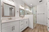 This residence features 3 bedrooms, 2 full baths, 1 half bath, and an array of luxurious features, from the open-concept floor plans to the elegant 8-foot doors and quartz countertops. Enjoy spa-like tile showers and the convenience of a 2-car garage, as well as a fenced backyard - perfect for outdoor gatherings. Don't miss the chance to make this home your own; pets are allowed with approval and fee.
