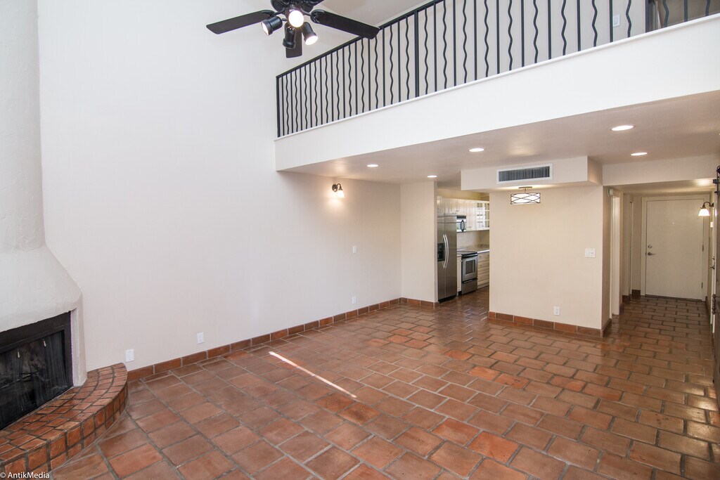 Property Id: 11343 UNFURNISHED resort-style townhome in the heart of Old Town Scottsdale and walking distance to dining, nightclubs, shops, galleries & sports events, is waiting for you to live your best life!! This light/bright 2 bed home features a modern kitchen with stainless appliances w/ filtered ice/water & dedicated pantry. Open concept living/dining area w/high ceilings, wood burning fireplace, and French doors that open to a private shaded patio. The loft above is open to the living area…great for office or extra guest sleepers. All baths are completely remodeled with a modern Spanish design, dual sinks in master, subway tile, and wood grain tile floors. Hardwood floors in beds w/ blackout curtains. Other features incl washer/dryer, closet organizers, and an attached garage for your car. Plenty of extra on street parking. This quaint community has a private pool+Jacuzzi oasis surrounded by flora & fauna. Inquire about pet policy.