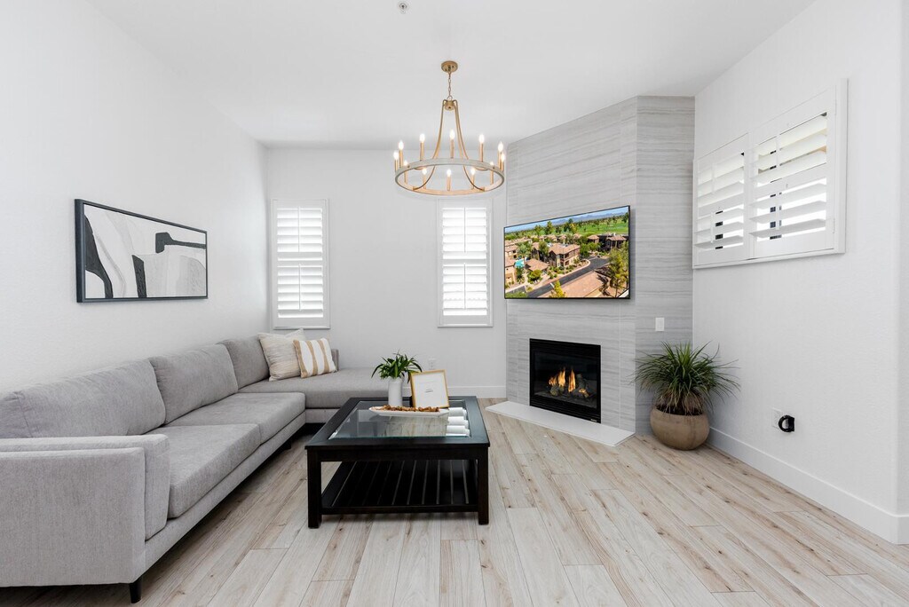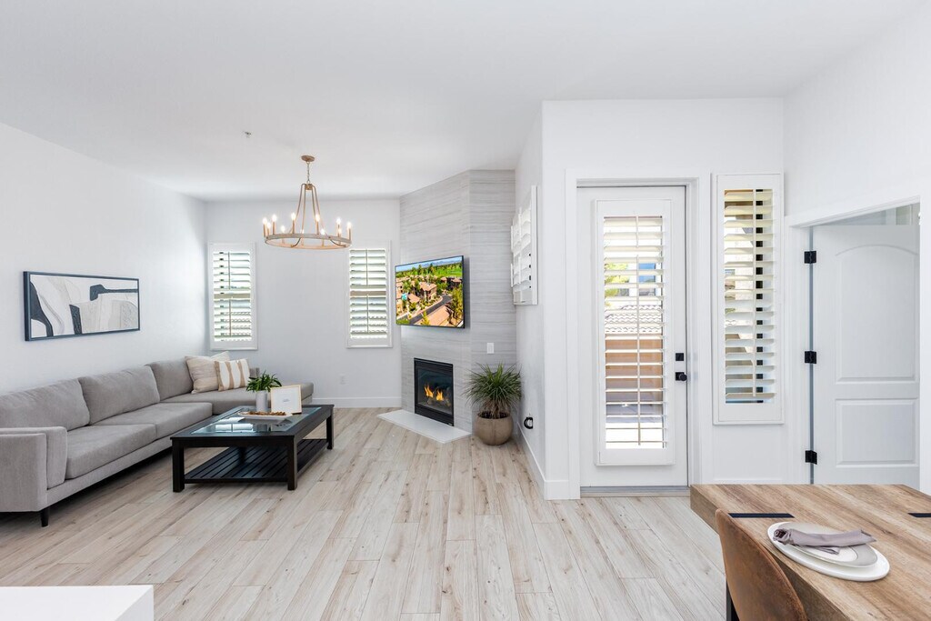 Experience upscale living in this beautifully furnished top-floor condo located in a secure, gated enclave just minutes from premier dining, shopping, parks, and golf courses! This stylish split 2-bed, 2-bath layout offers ultimate privacy with king-sized suites, each featuring spacious en-suite bathrooms, walk-in closets, and elegant finishes throughout. The open-concept living space includes two 65-inch TVs, a plush sectional, a designated dining area, and a fully furnished balcony perfect for relaxing. The kitchen is outfitted with all-new appliances and a water filtration system for added comfort. Additional features include a private one-car garage, generous storage space, and access to exclusive community amenities such as a heated swimming pool, fitness center and lounge areas.