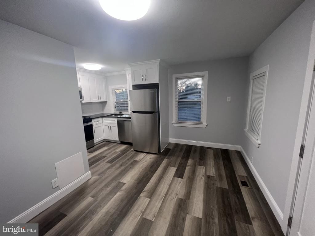 Beautifully updated 1 bedroom unit on the first floor in beautiful downtown Erdenheim. Off-street parking with minimal stairs to unit and common laundry included with the unit! The whole unit is freshly painted with neutral colored walls and bright white wood trim. Pretty and resilient wood grain vinyl plank flooring. Gorgeous kitchen, with white cabinetry, crown, molding, subway tile, backsplash, polished granite countertop, undermount stainless steel sink with garbage disposal, and Frigidaire stainless steel appliances, including full-size refrigerator, five burner gas stove, and over the range microwave. The unit has a combination living/eating area, kitchen, one large bedroom with two large closets, and bathroom with ceramic tile flooring, sit-in tub and shower and trendsetting vanity and mirror. Bathroom also has built-in shelving and the whole unit has hi efficiency, bright, LED lighting. Laundry, washer and dryer available in the building. This is a terrific location within walking distance to Flourtown and Chestnut Hill and with easy access to public transportation, 309, Turnpike, shopping, restaurants, gyms and more. Only a $150 per month flat fee for all utilities!