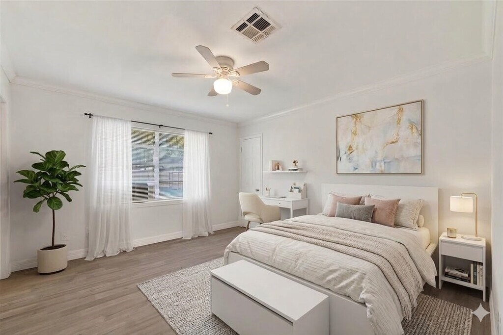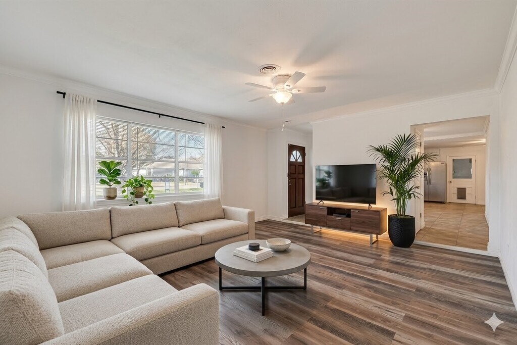 Located in the heart of League City proper,this beautifully refurbished 3-bedroom,2-bath home feels like new! Fresh interior and exterior paint,stylish new ceiling fans,and luxury vinyl wood-plank flooring create a bright,modern living space. Enjoy a spacious,fully fenced backyard—perfect for relaxing or entertaining—along with a 2-car garage and a full appliance package for added convenience. This move-in-ready gem won’t last long! MLS# 21327521